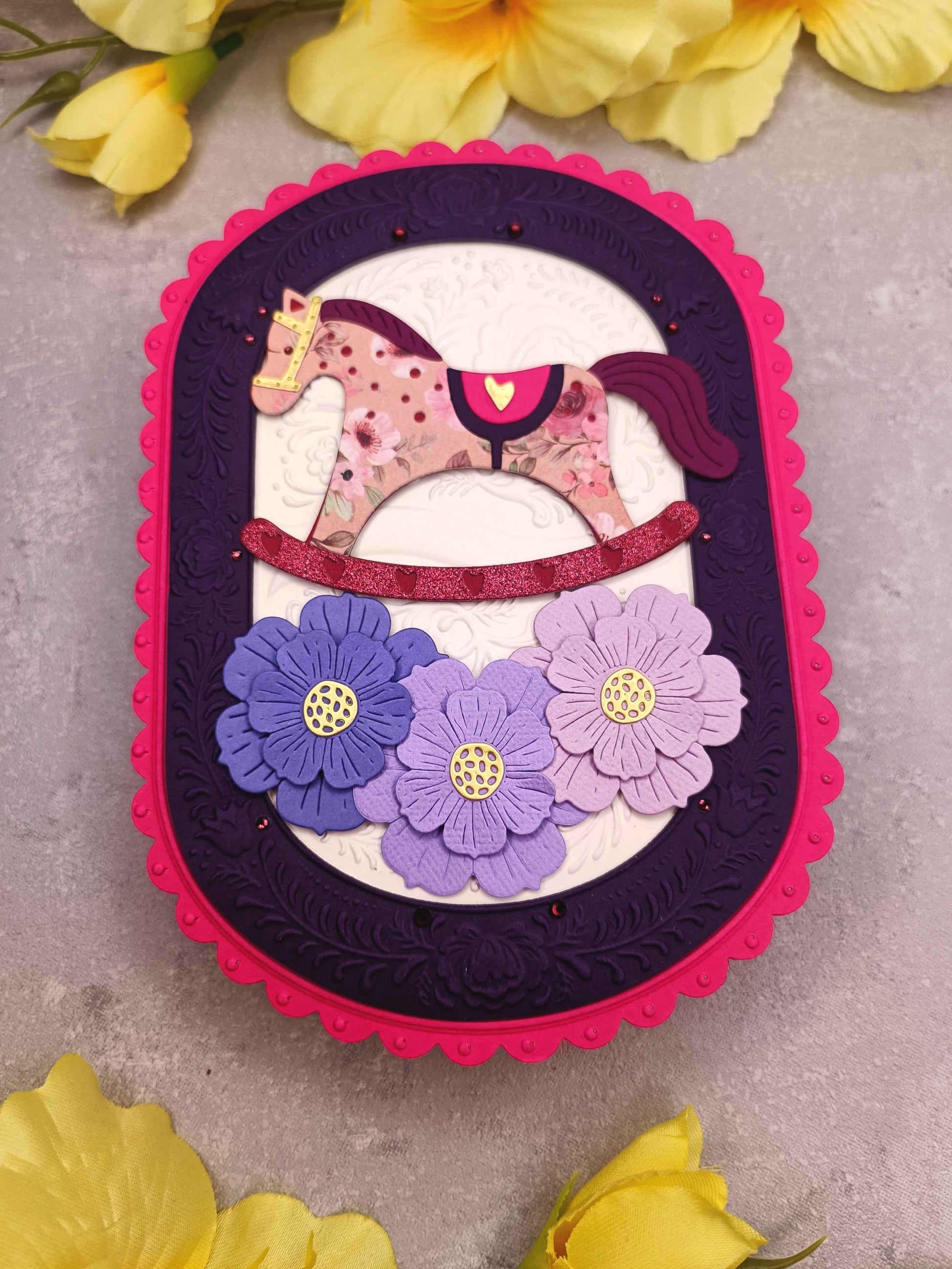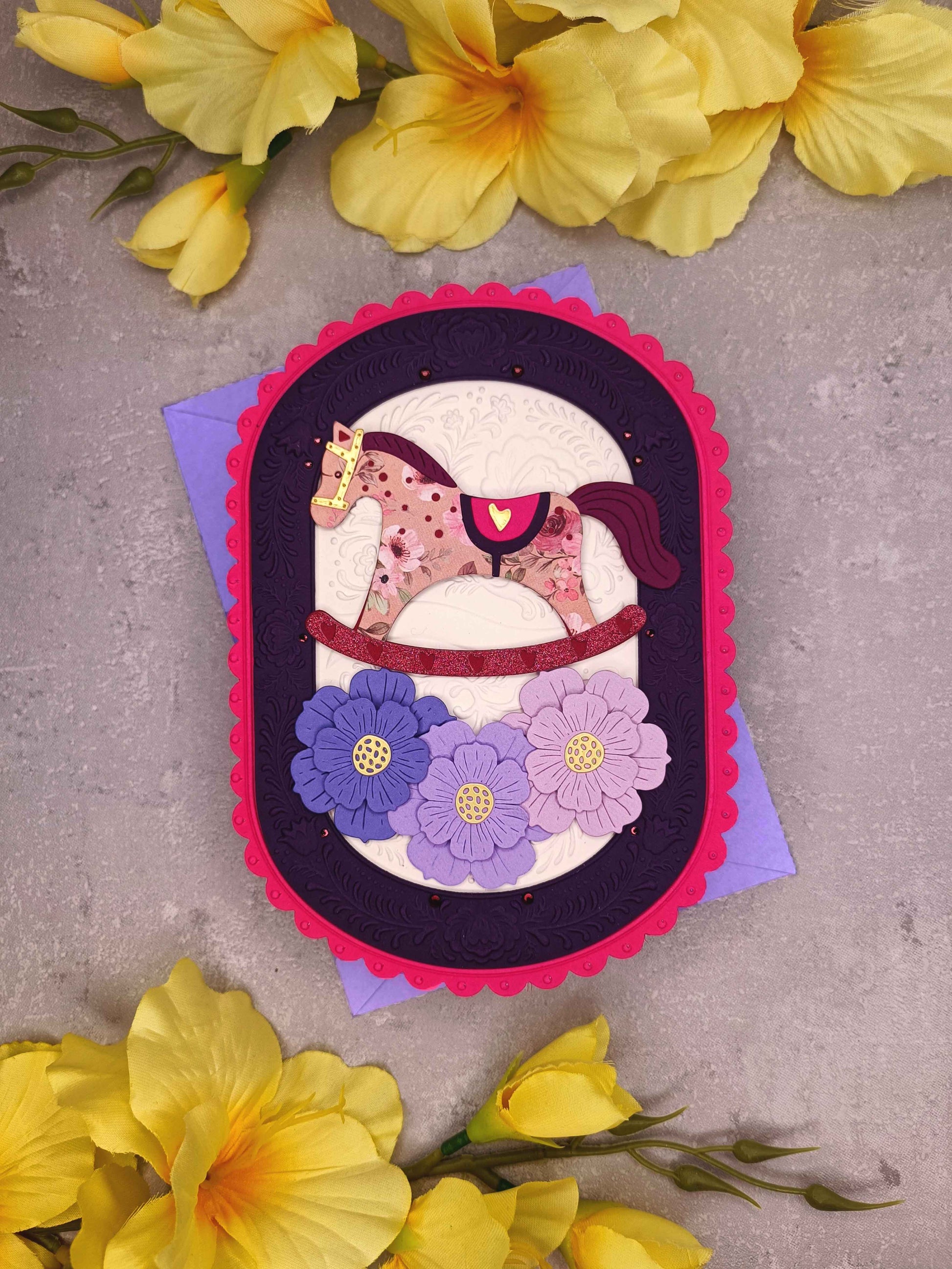 - Ručně vyrobené dětské přání s motivem houpacího koníka