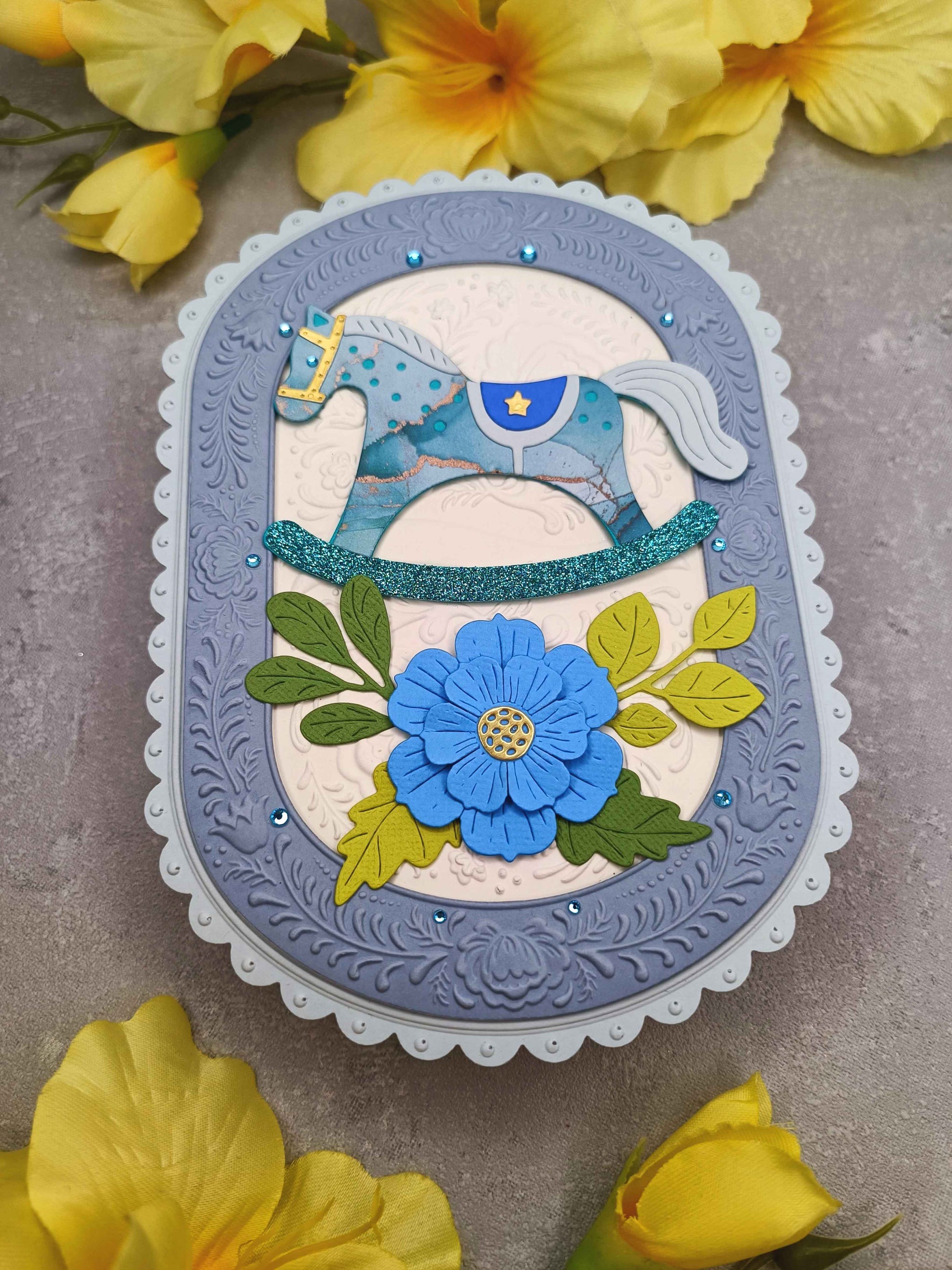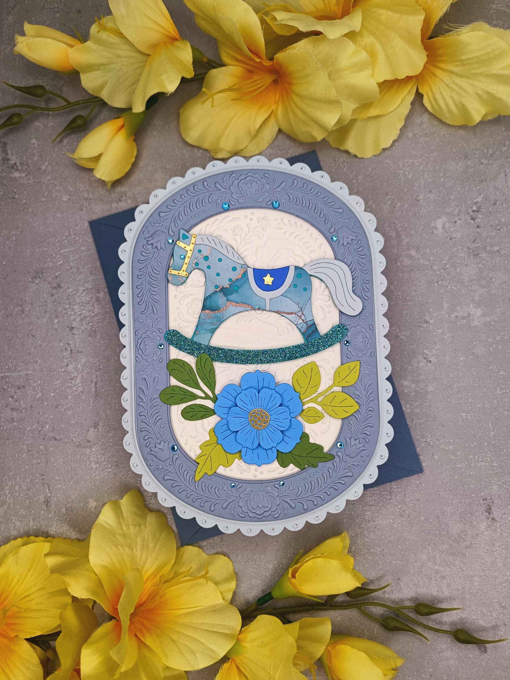 - Ručně vyrobené dětské přání s motivem houpacího koníka