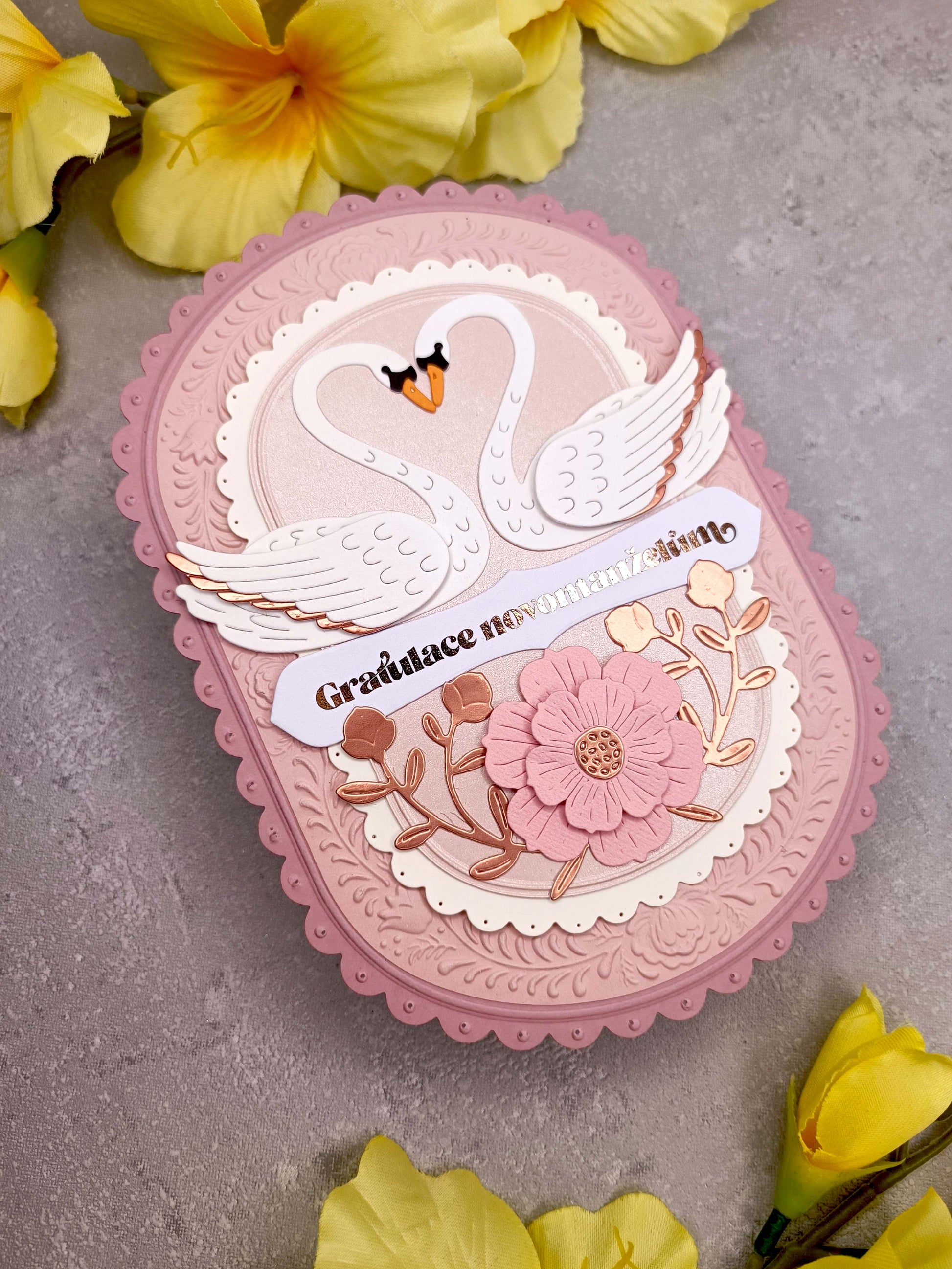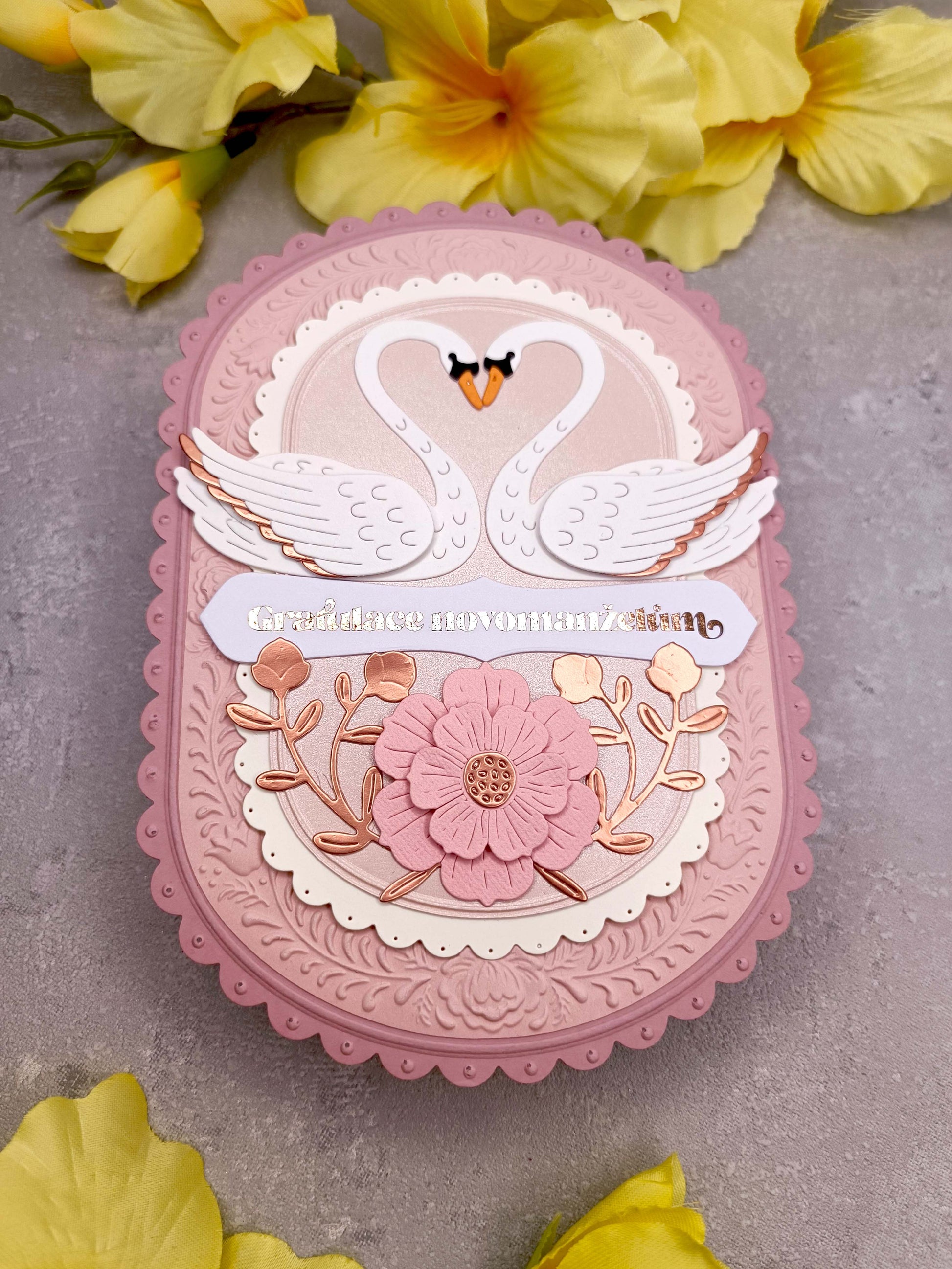 - Ručně vyrobené svatební blahopřání s motivem labutí
