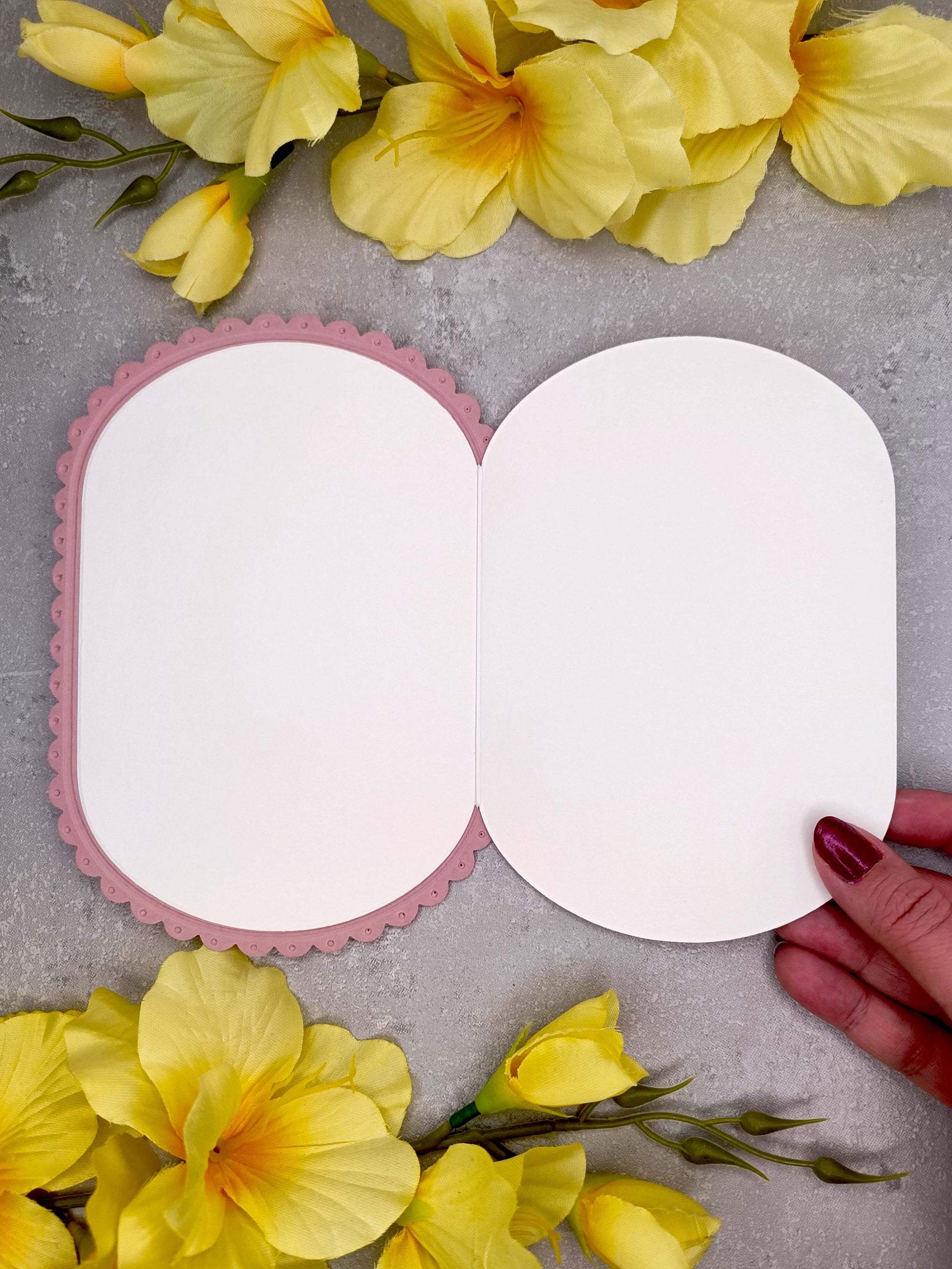 - Přání je zdobeno vystouplým motivem, zlatými elementy a růžovo-zlatým nápisem