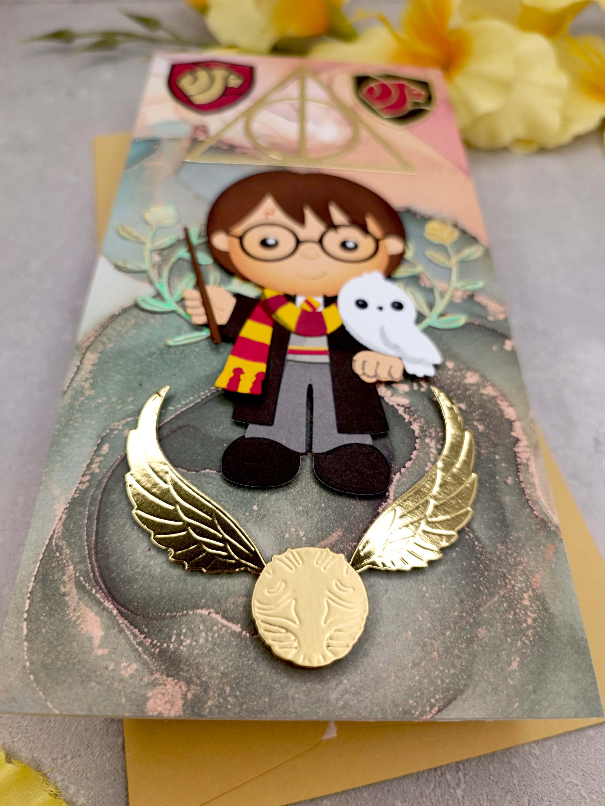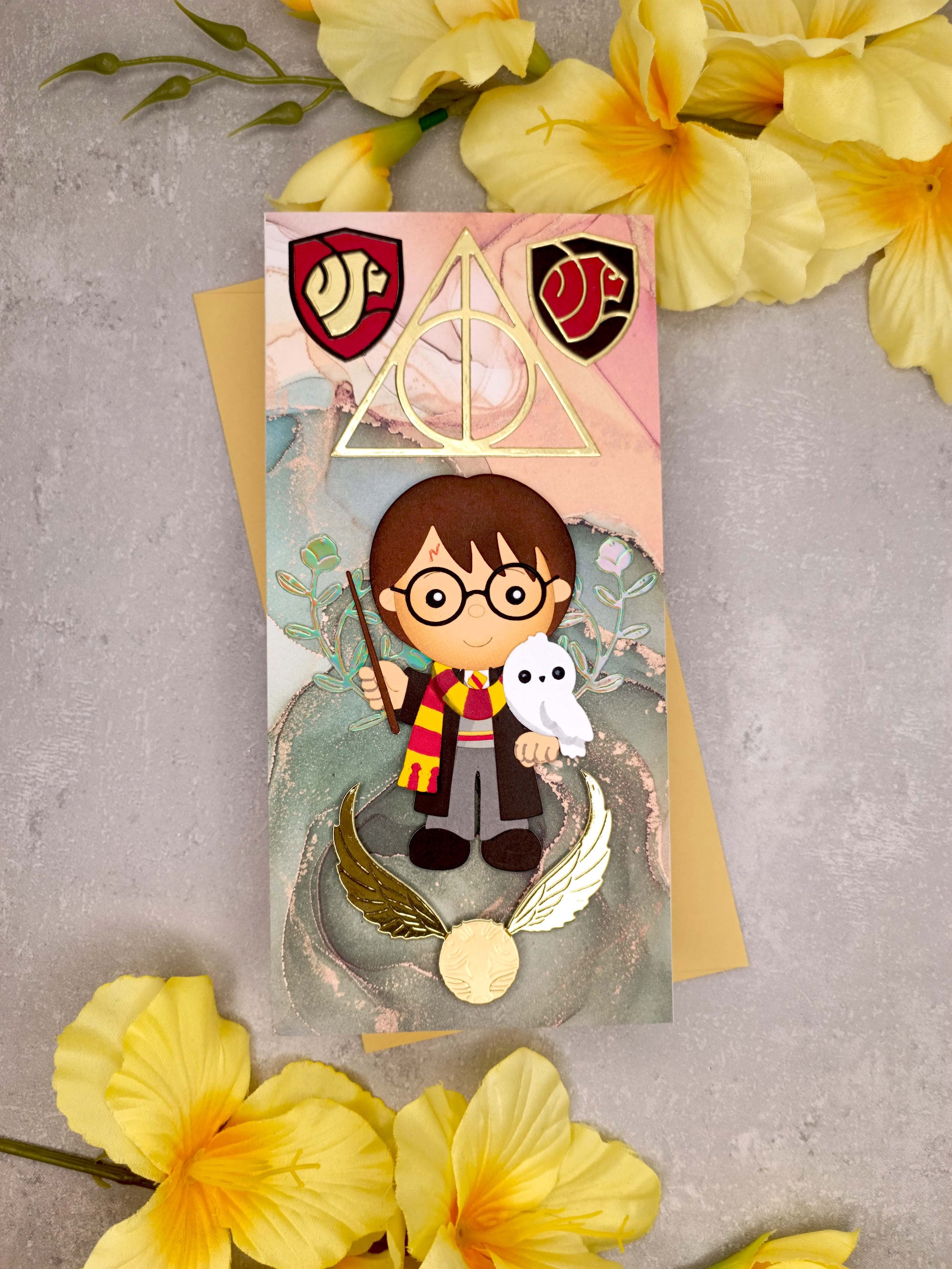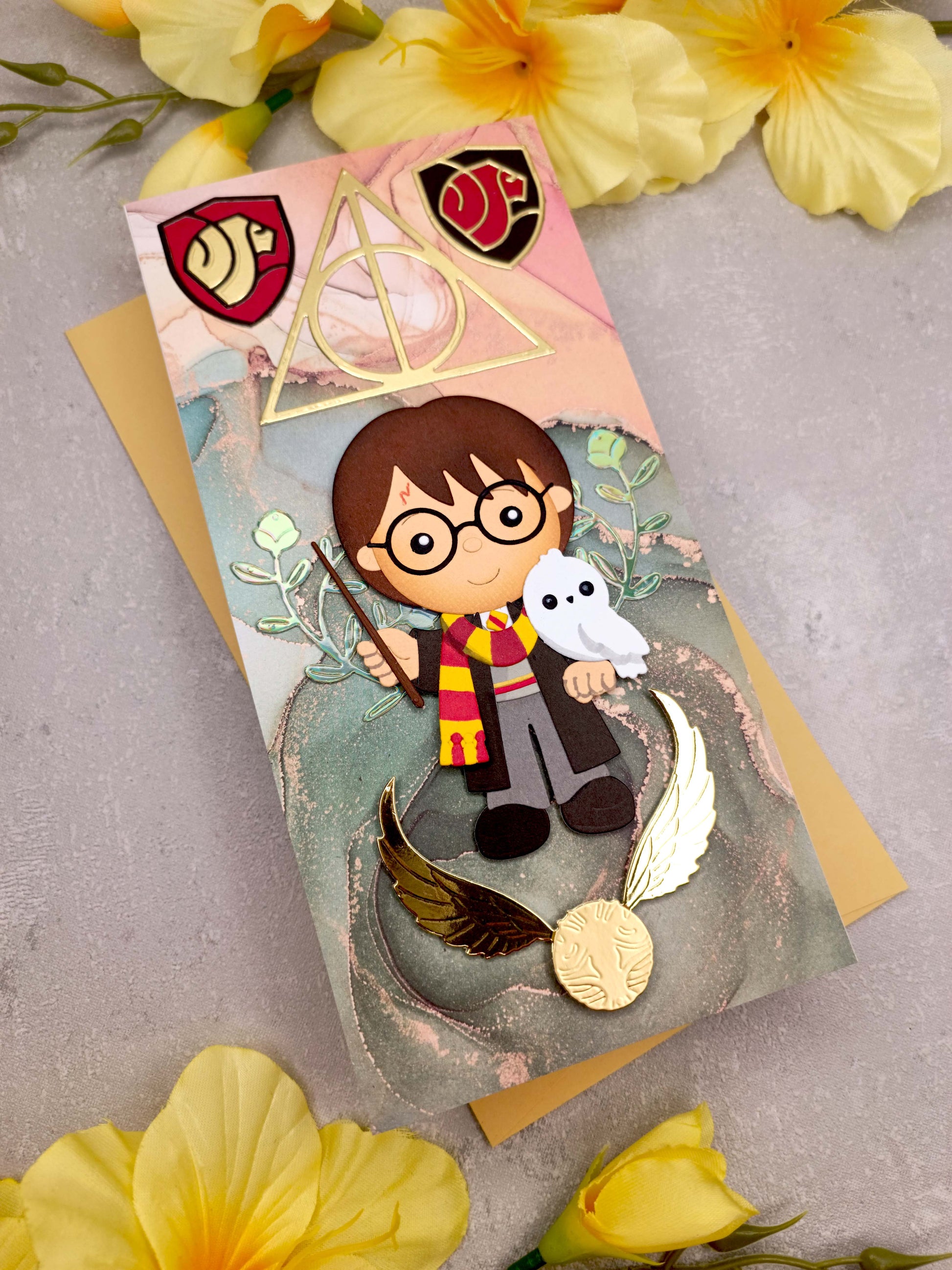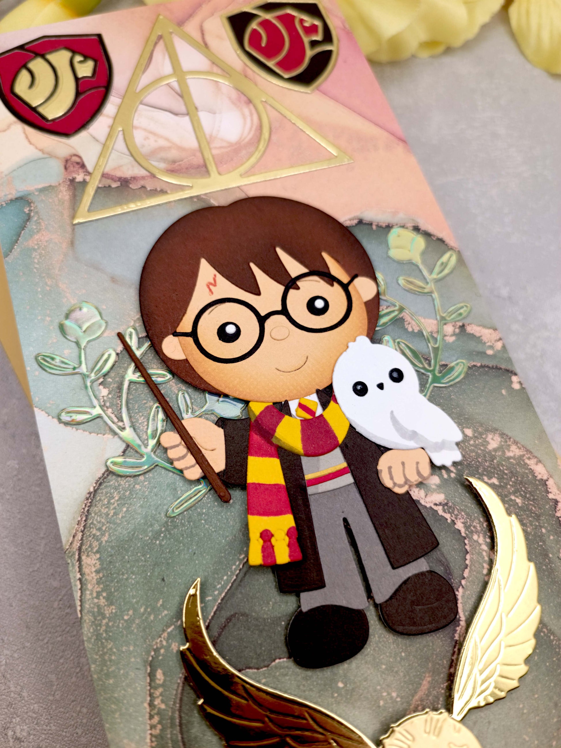 Vítejte v kouzelném světě! Toto ručně vyrobené přání s motivem Harryho Pottera je dokonalým dárkem pro všechny fanoušky čarodějnického světa.