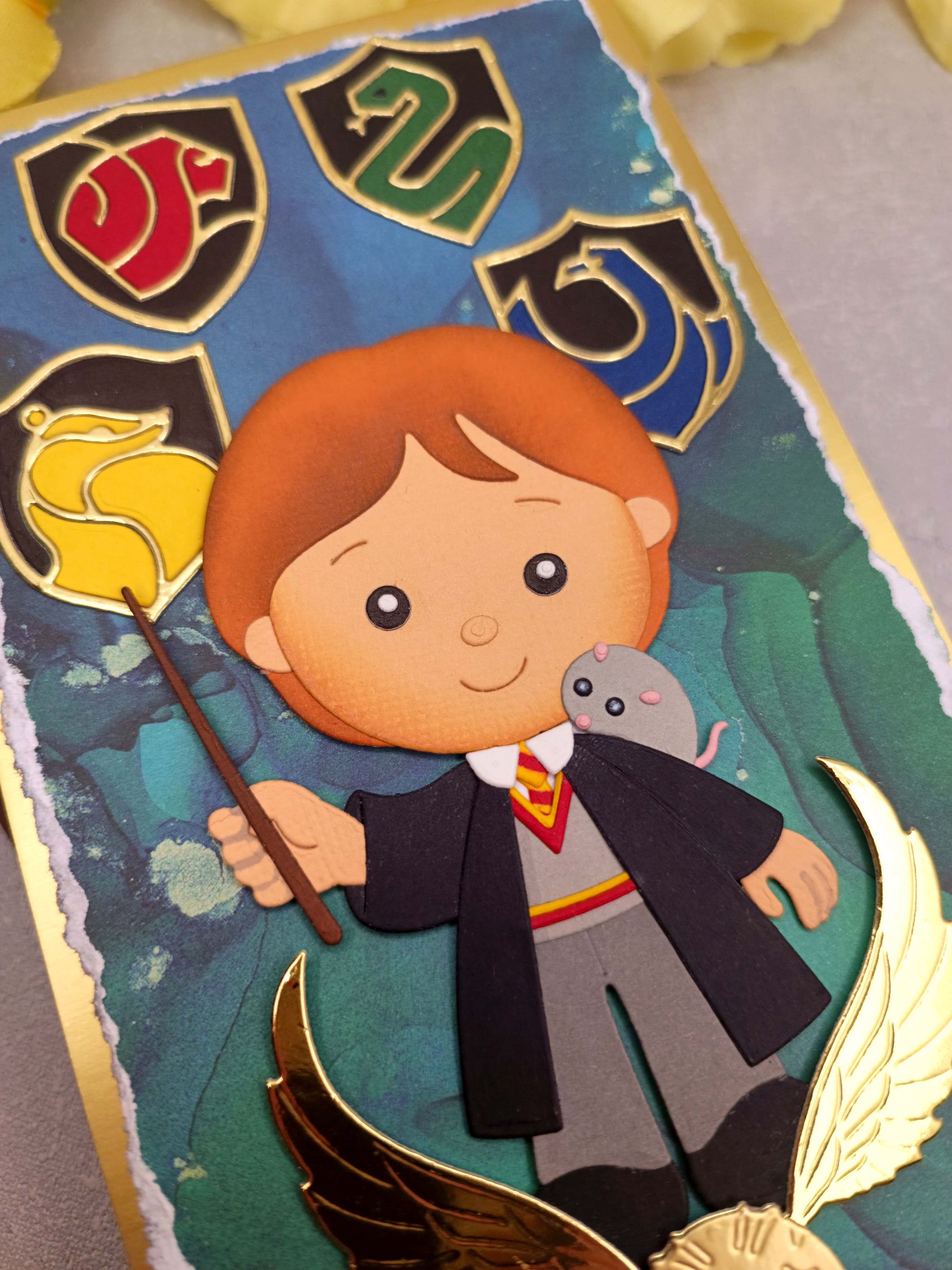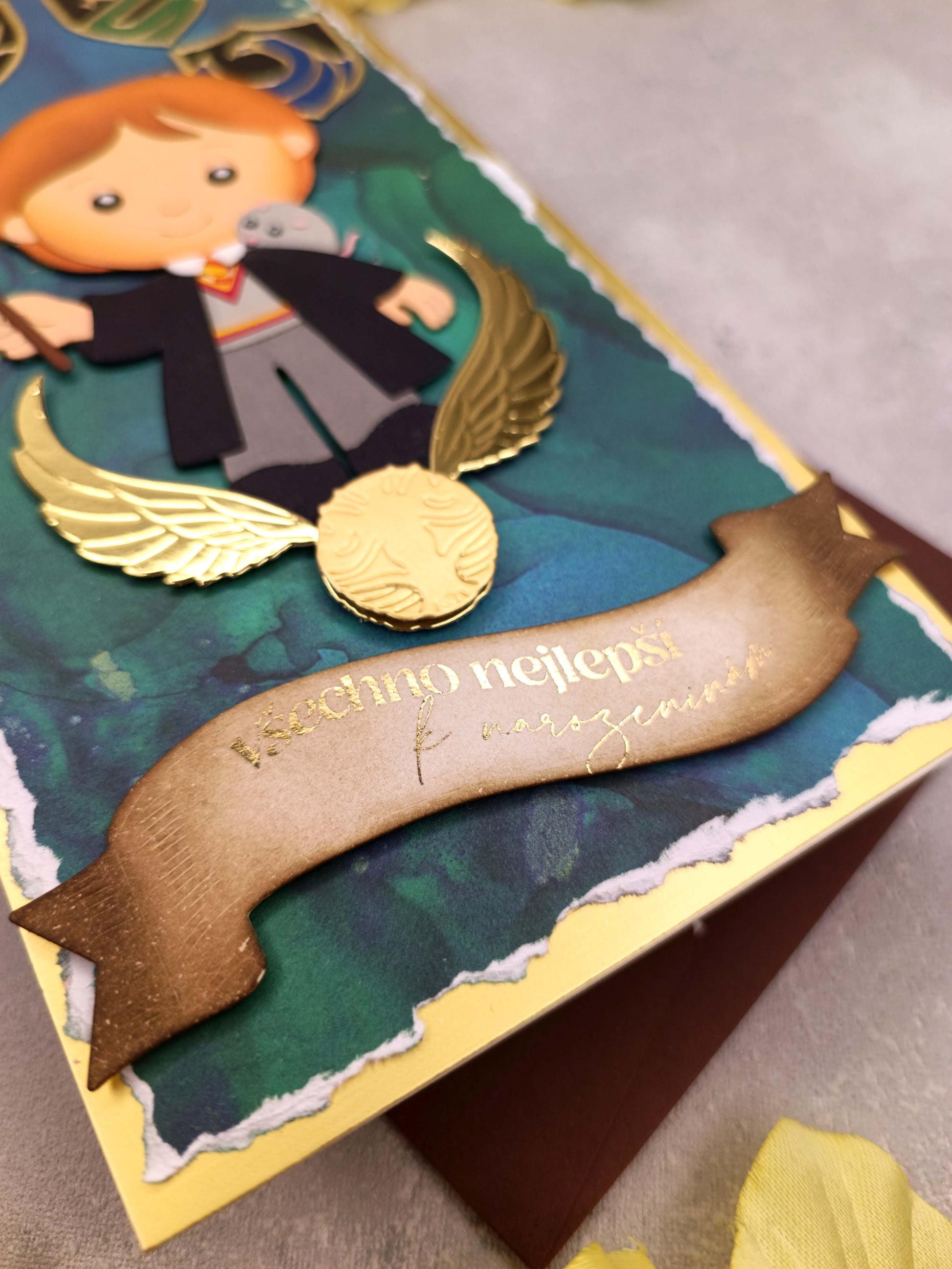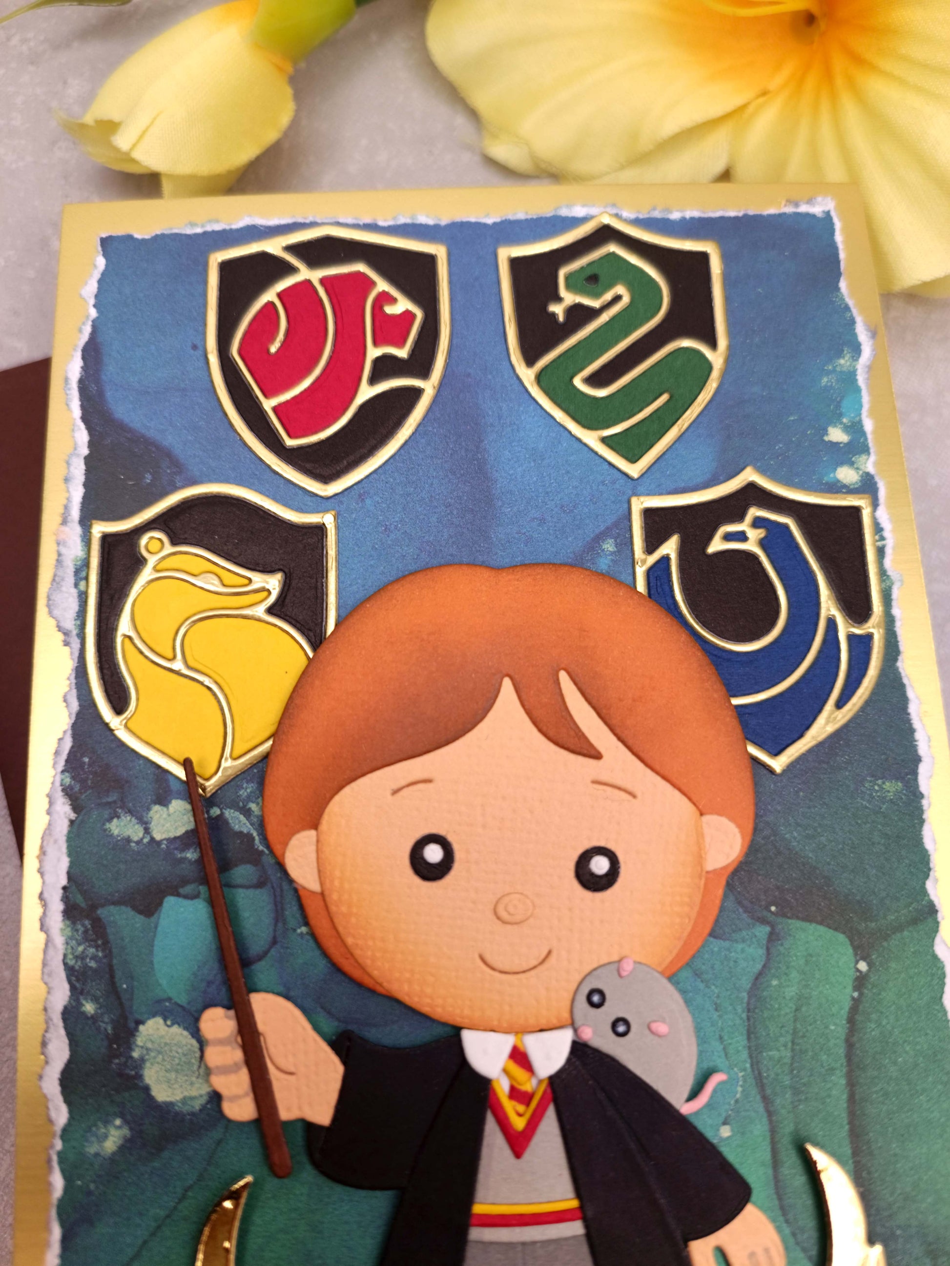 Vítejte v kouzelném světě! Toto ručně vyrobené přání s motivem Harryho Pottera je dokonalým dárkem pro všechny fanoušky čarodějnického světa.