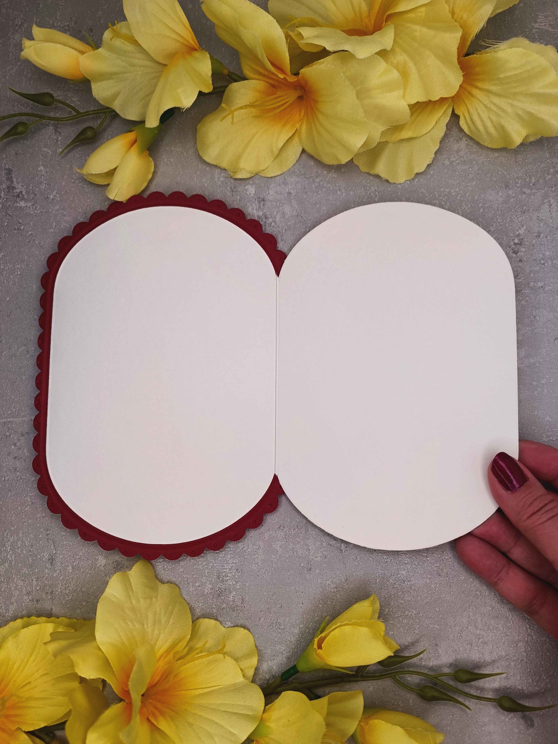 - Součástí je burgundy obálka