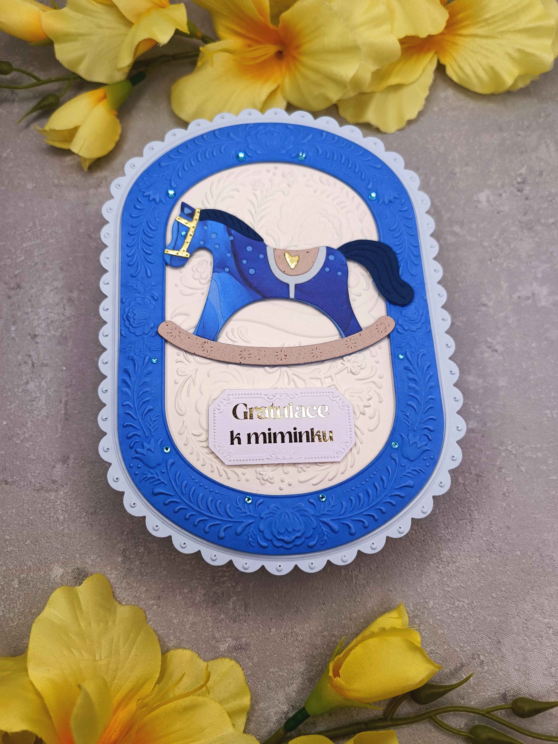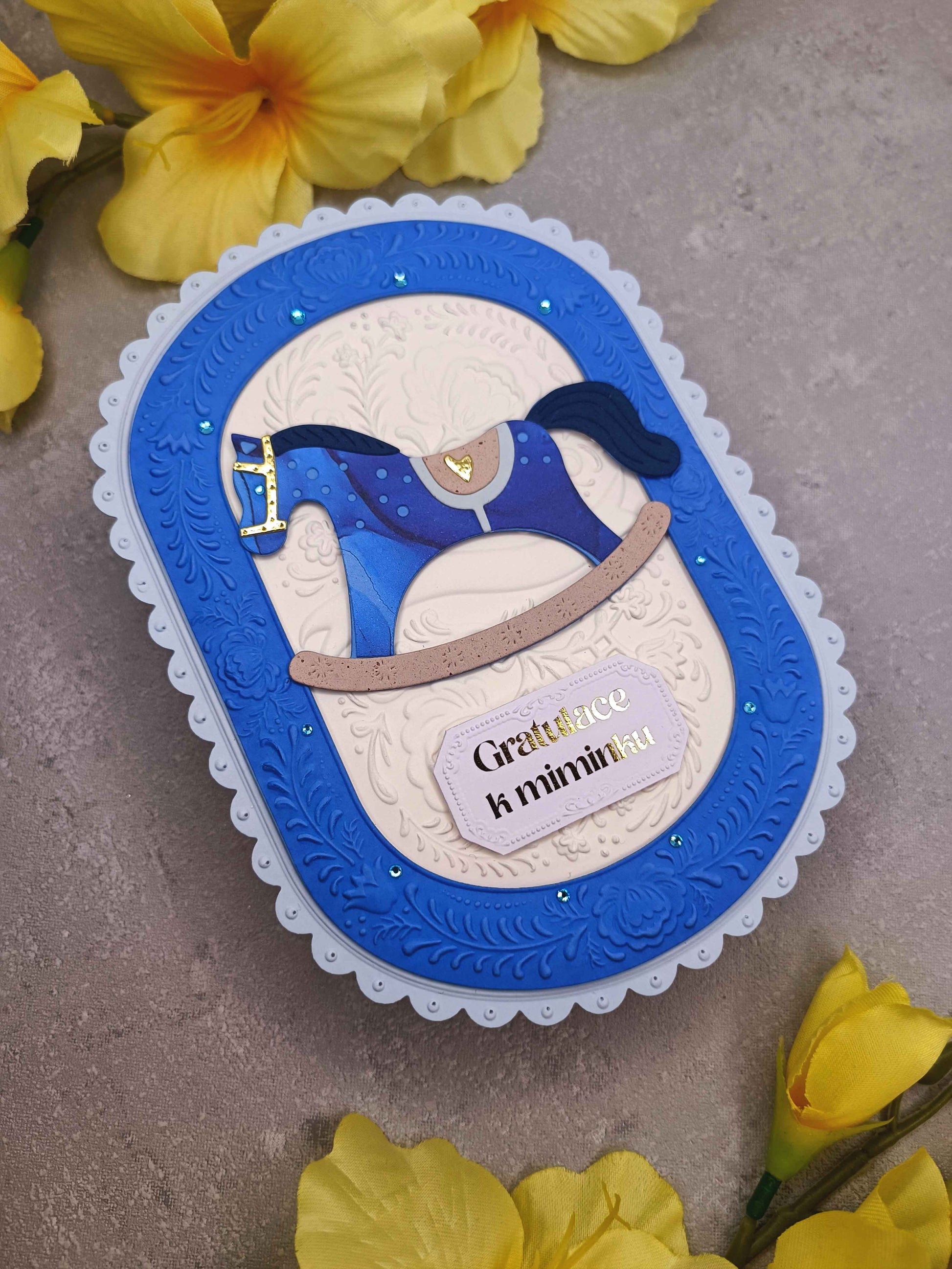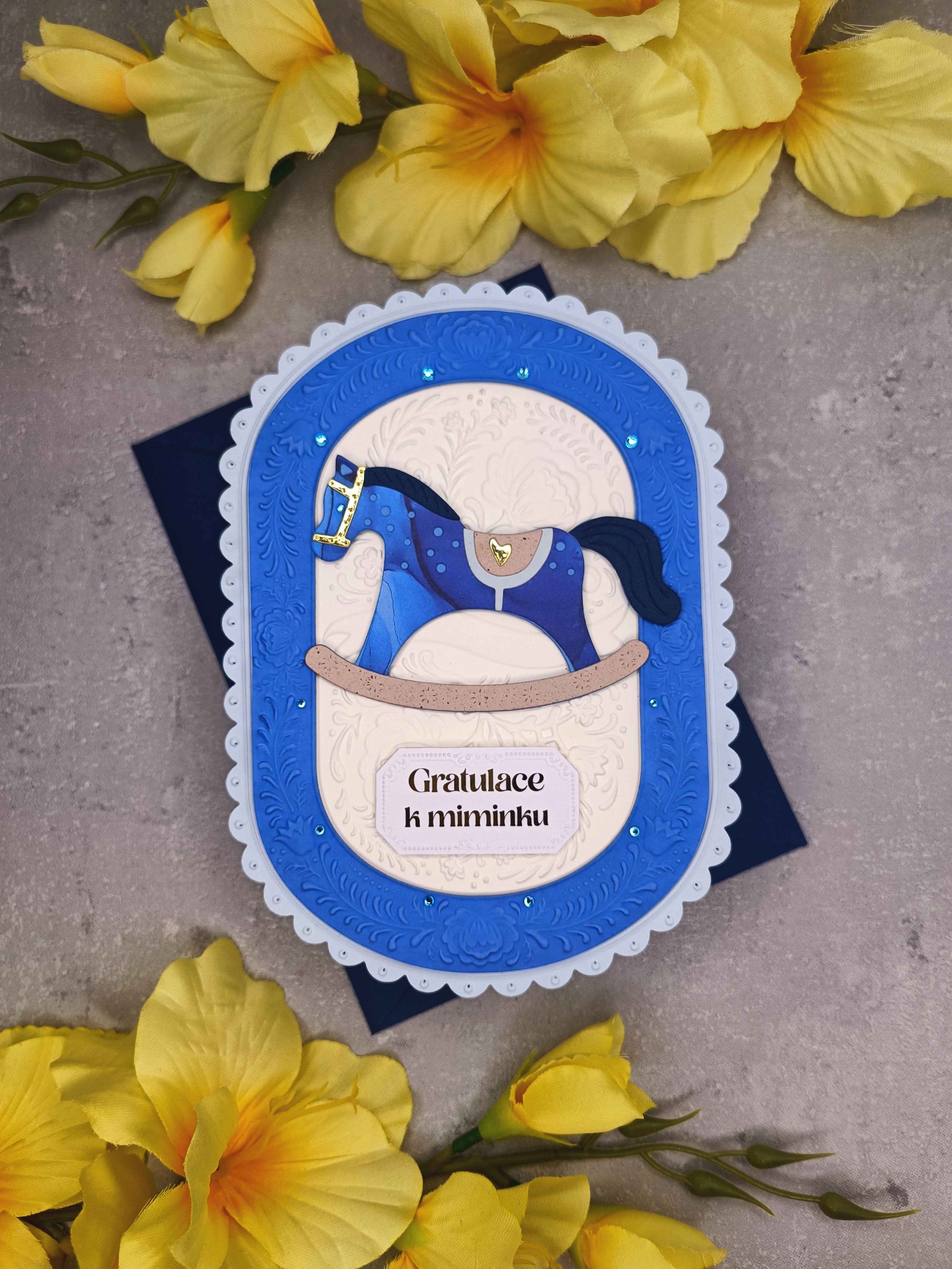 - Ručně vyrobené dětské přání s motivem houpacího koníka