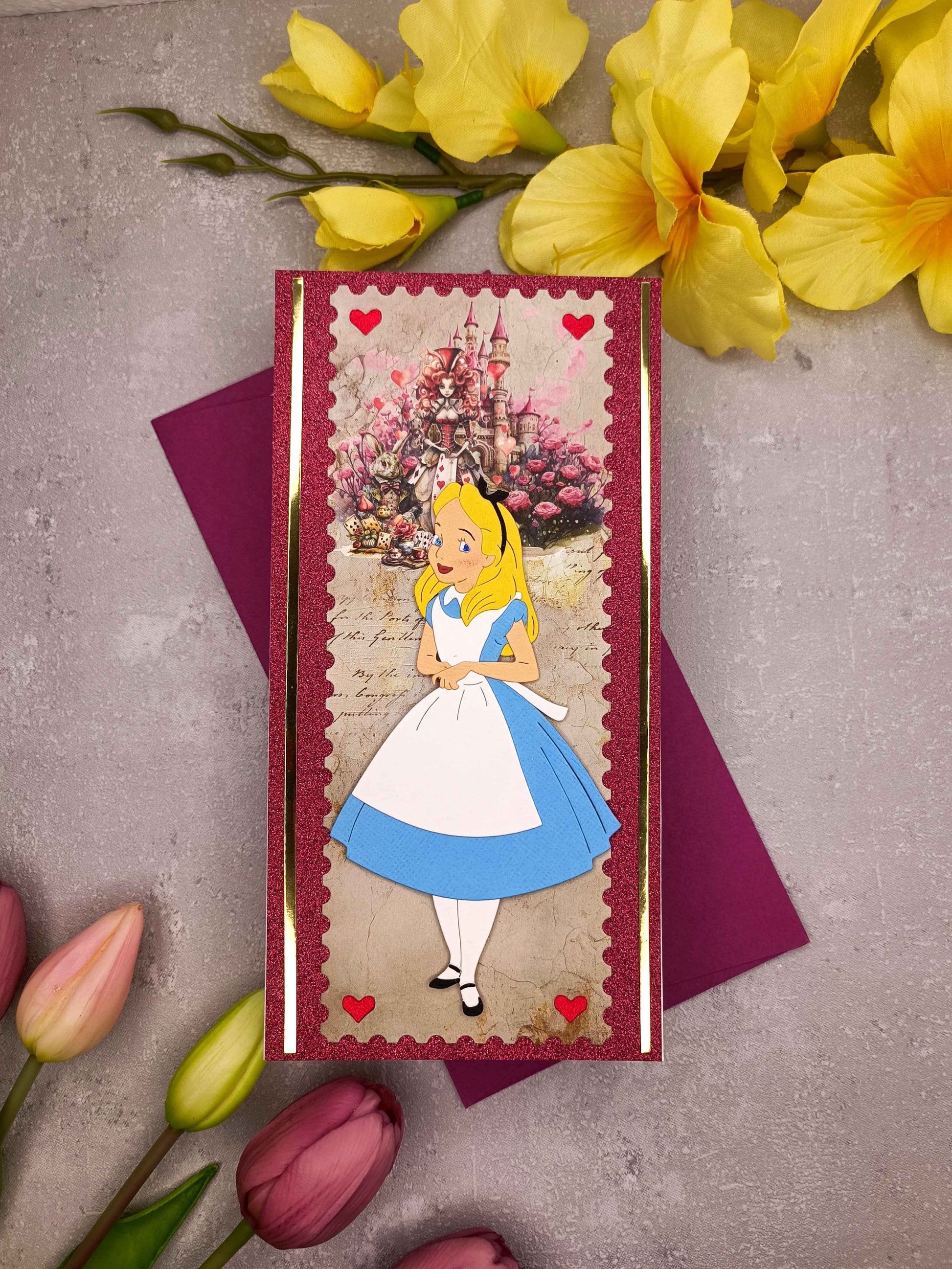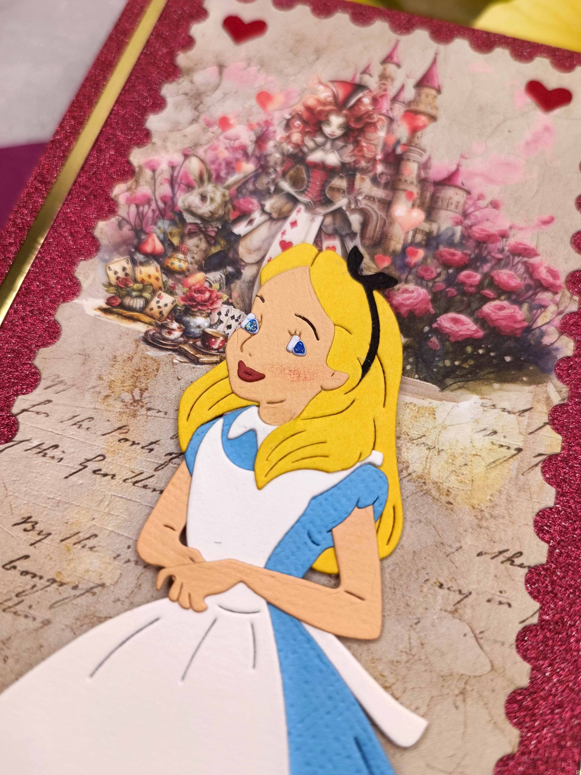- Přání je zdobeno tmavým, třpytivým růžovým papírem a zlatými proužky