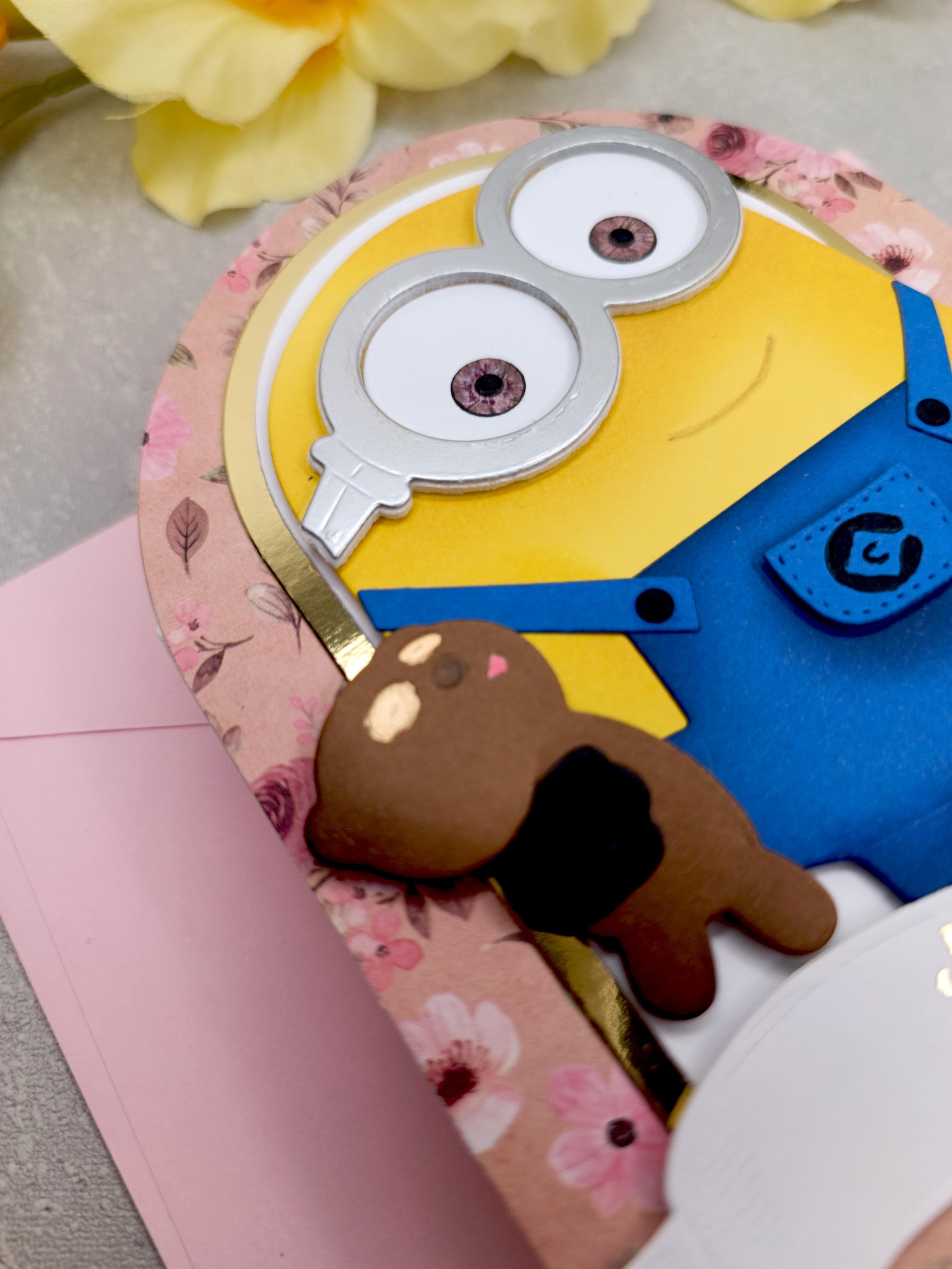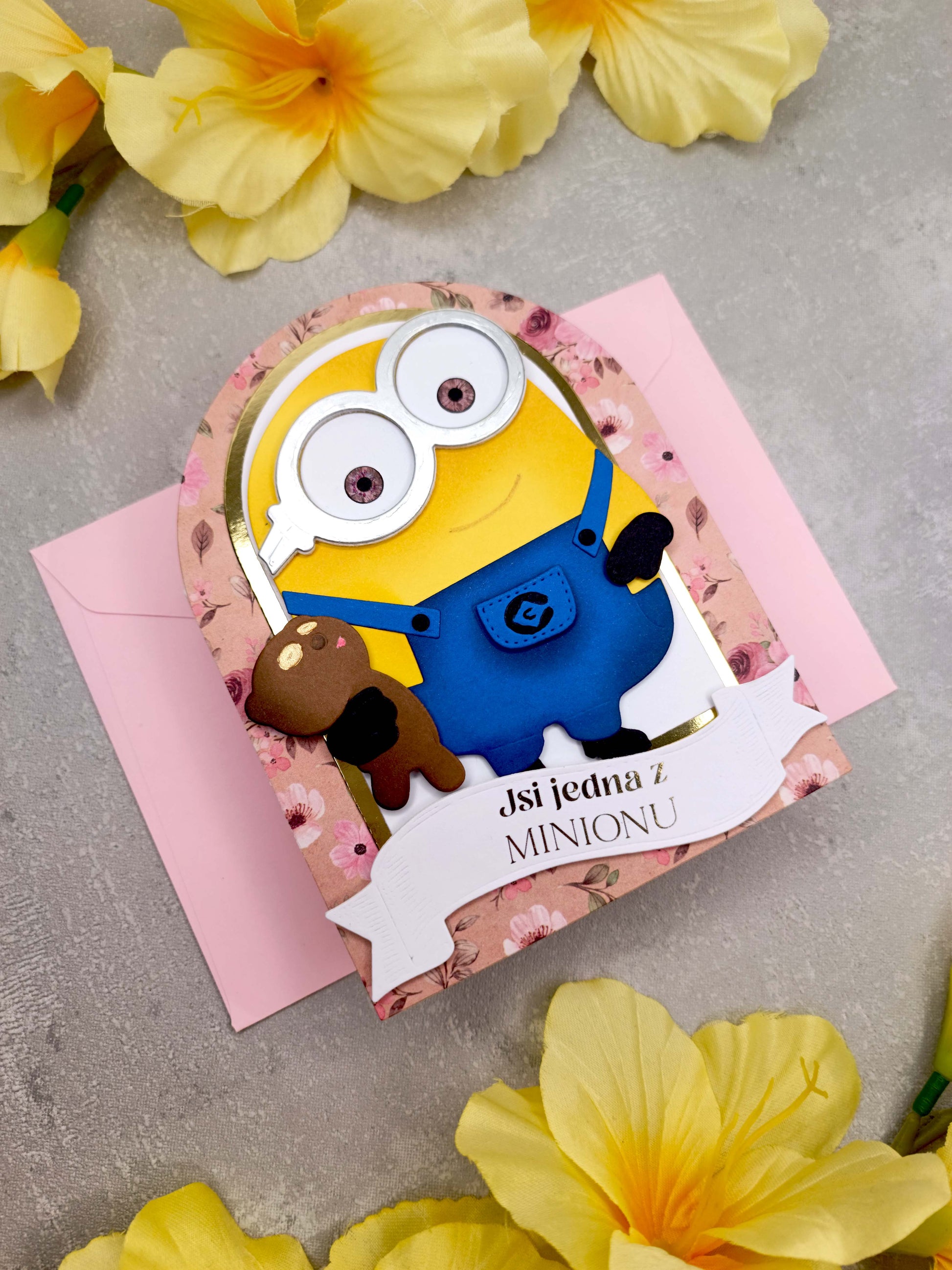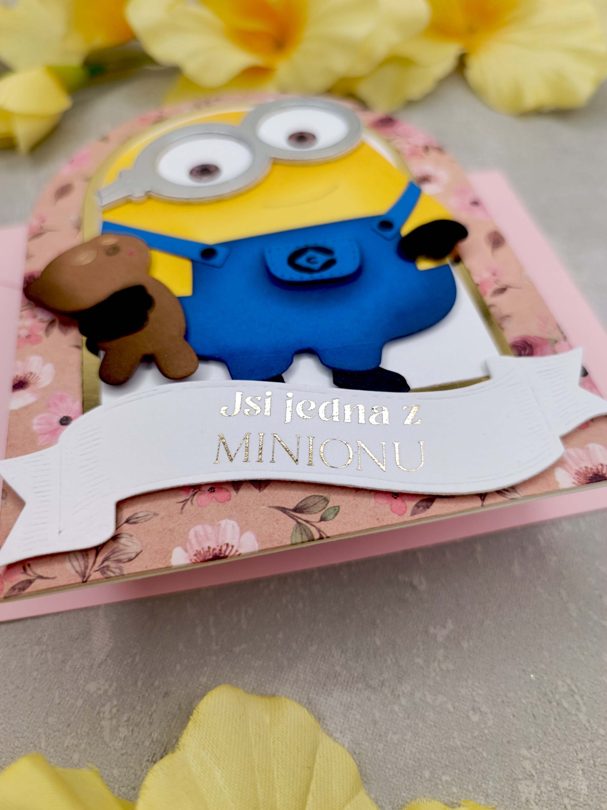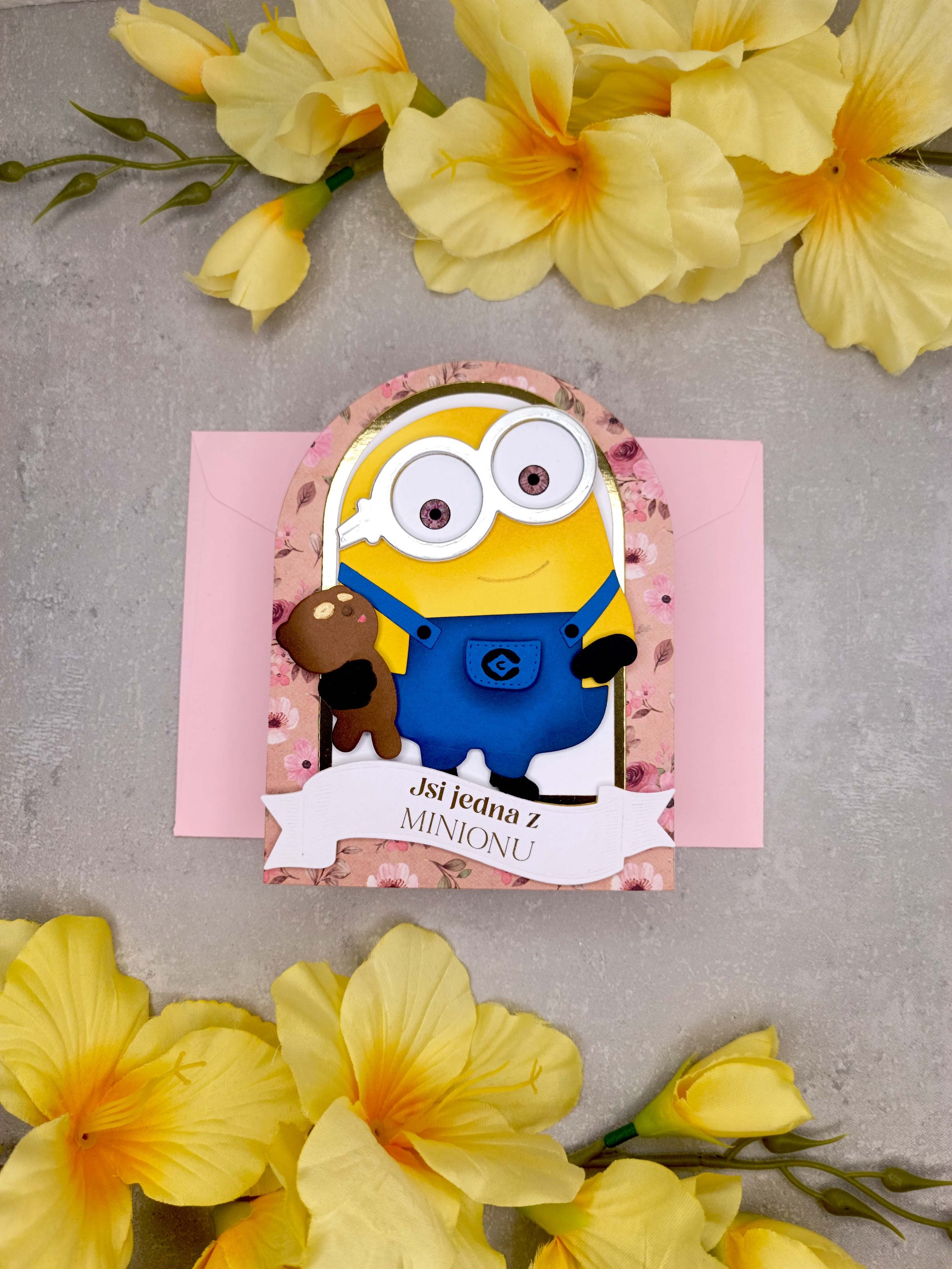 - Přání je ve tvaru oblouku, zdobeno květinovým papírem a zlatými elementy