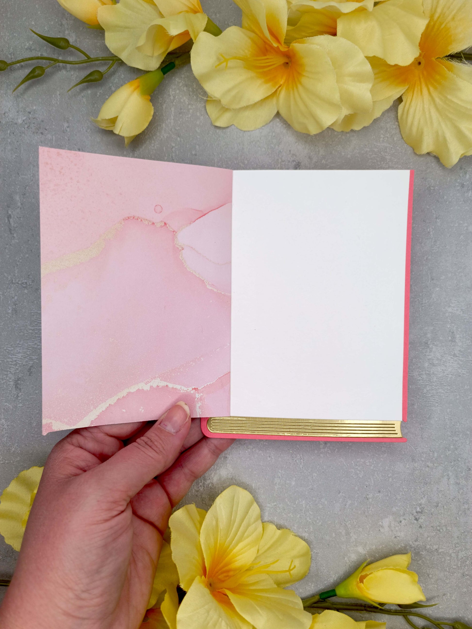- Přání je ve tvaru knihy a je zdobeno mramorovým papírem a zlatými elementy
