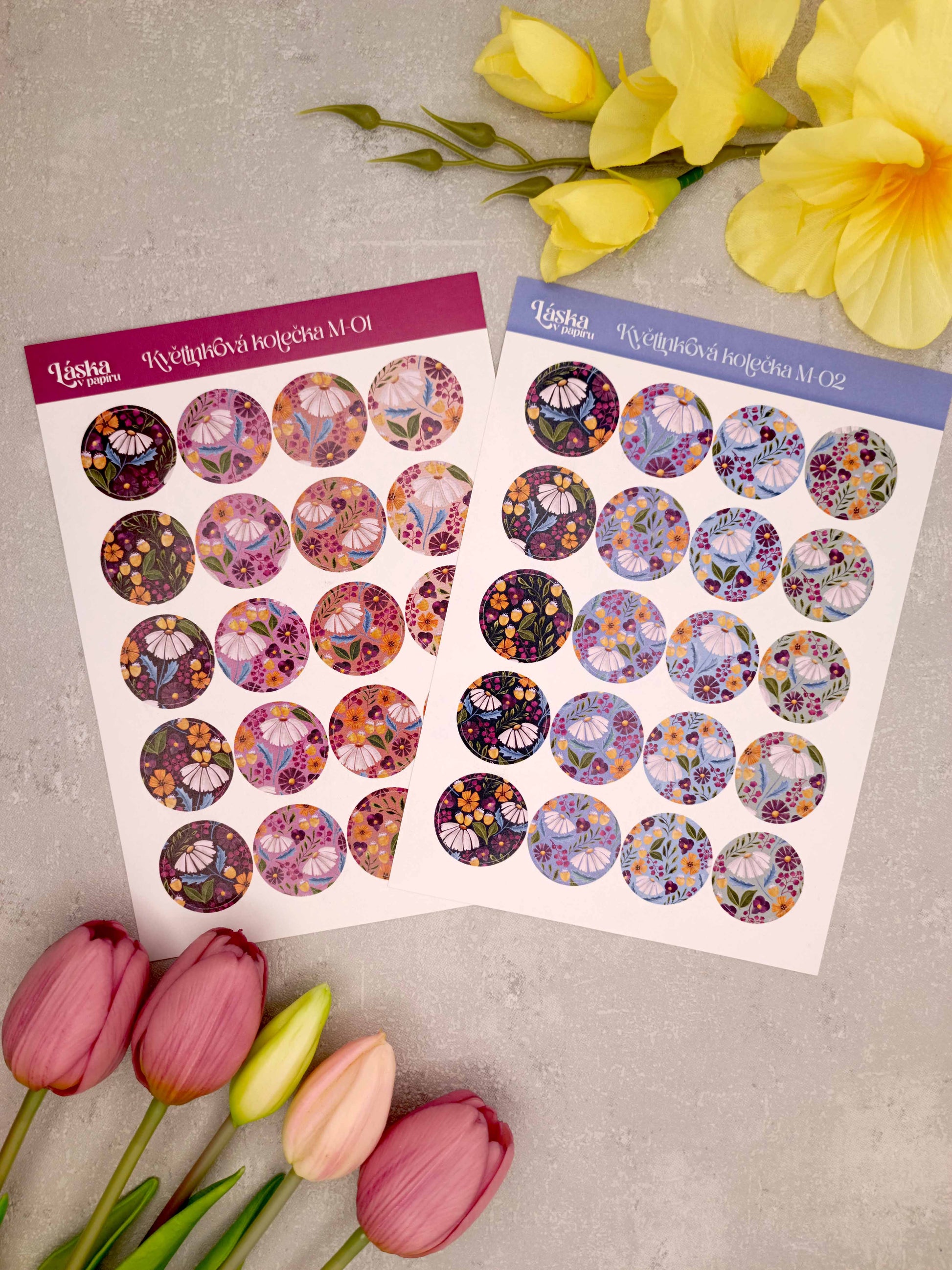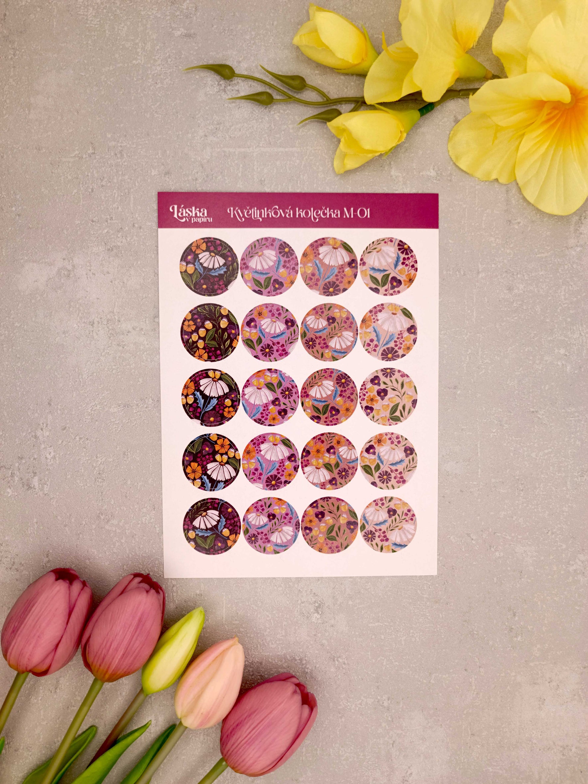 Arch samolepek s květinovými kolečky. Ideální na zdobení diáře, plánovače, obálek nebo na scrapbookingové projekty.