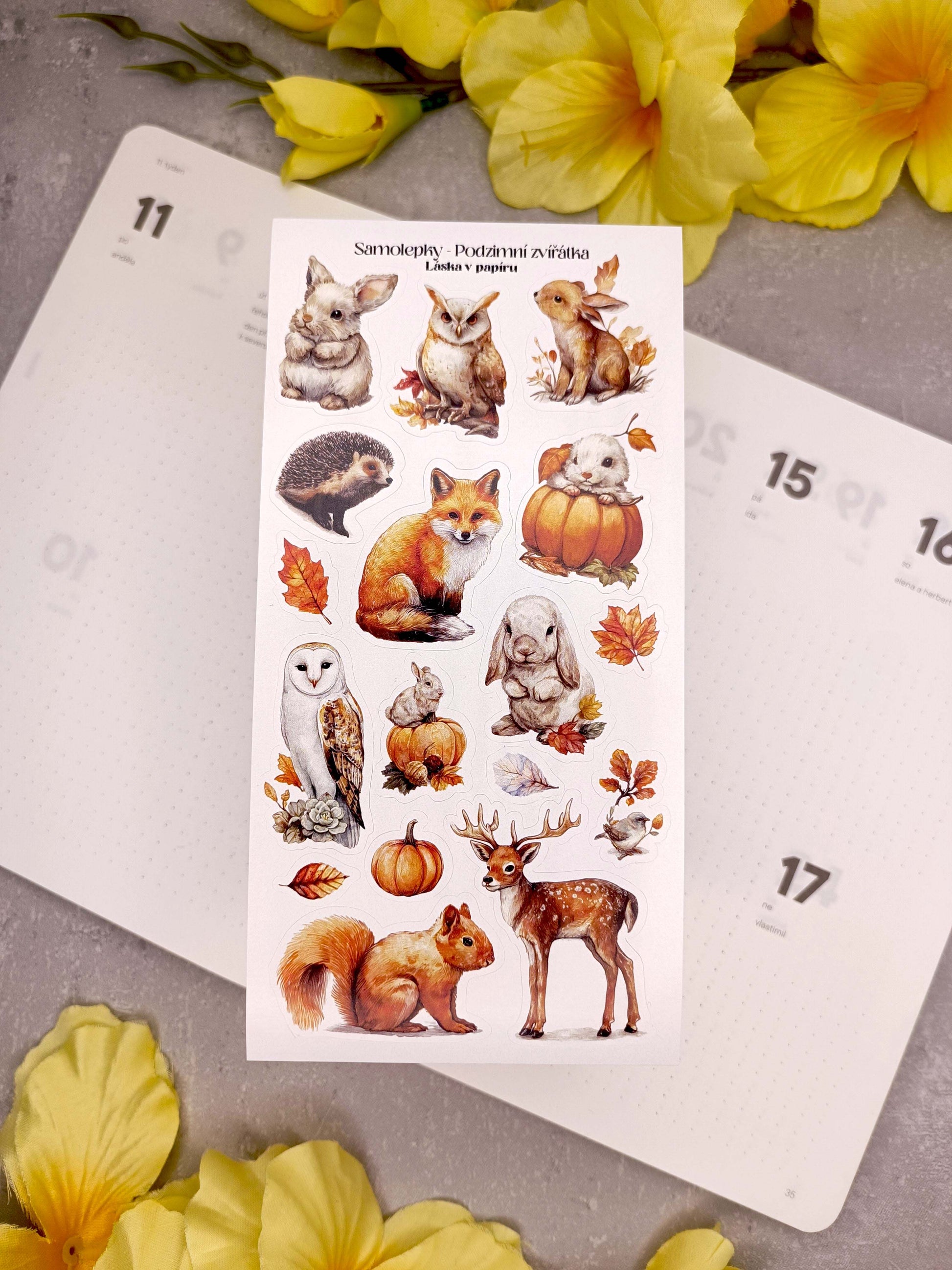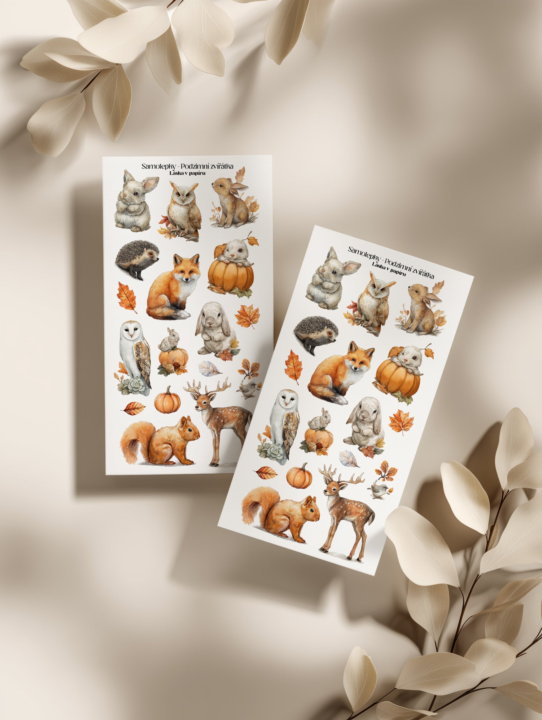 - motiv samolepek - podzimní zvířátka, zajíček, liška, sova, veverka, ježek, jelínek