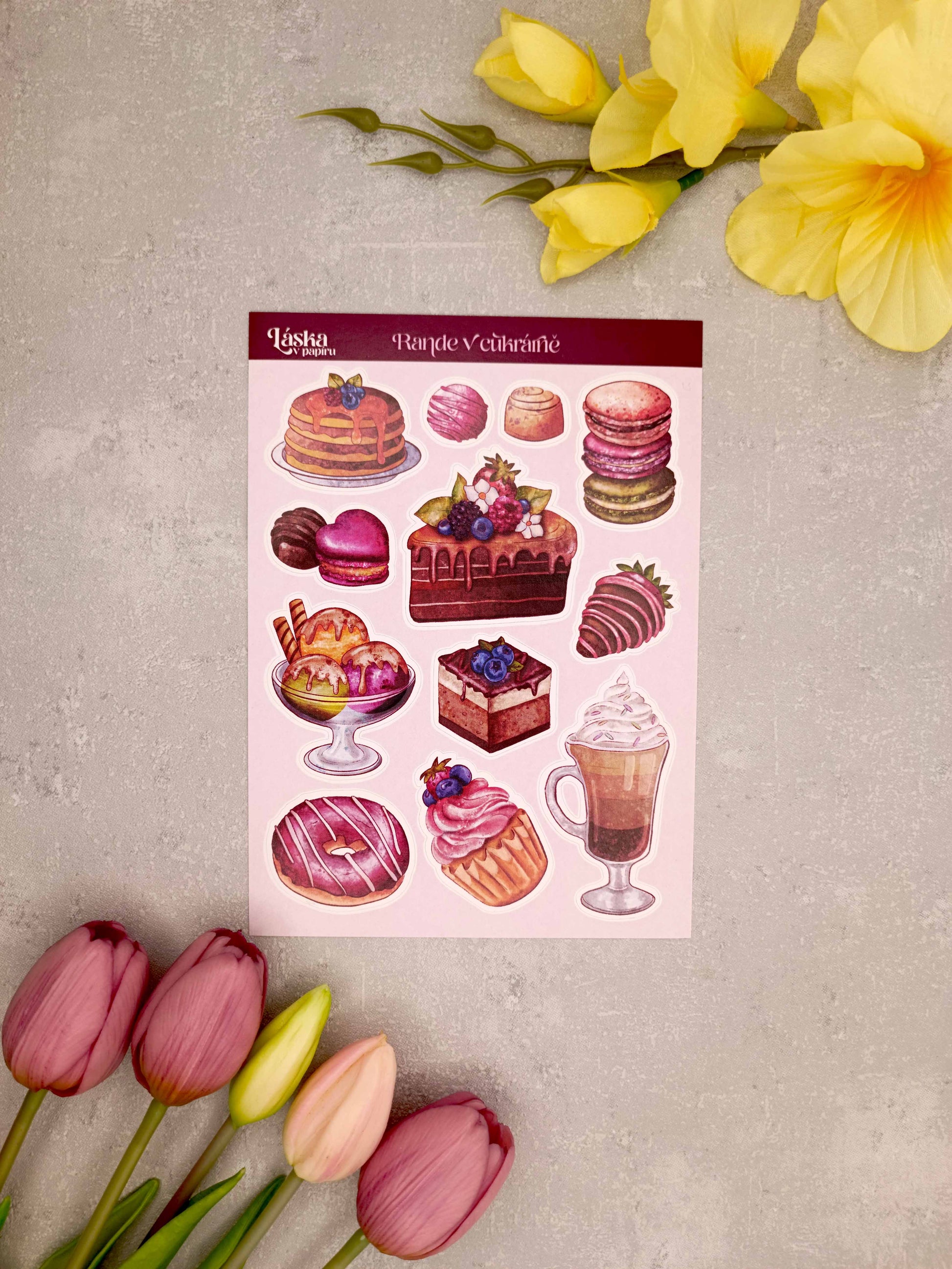 Arch samolepek se zákusky, kávou a zmrzlinou. Ideální na zdobení diáře, plánovače, obálek nebo na scrapbookingové projekty.