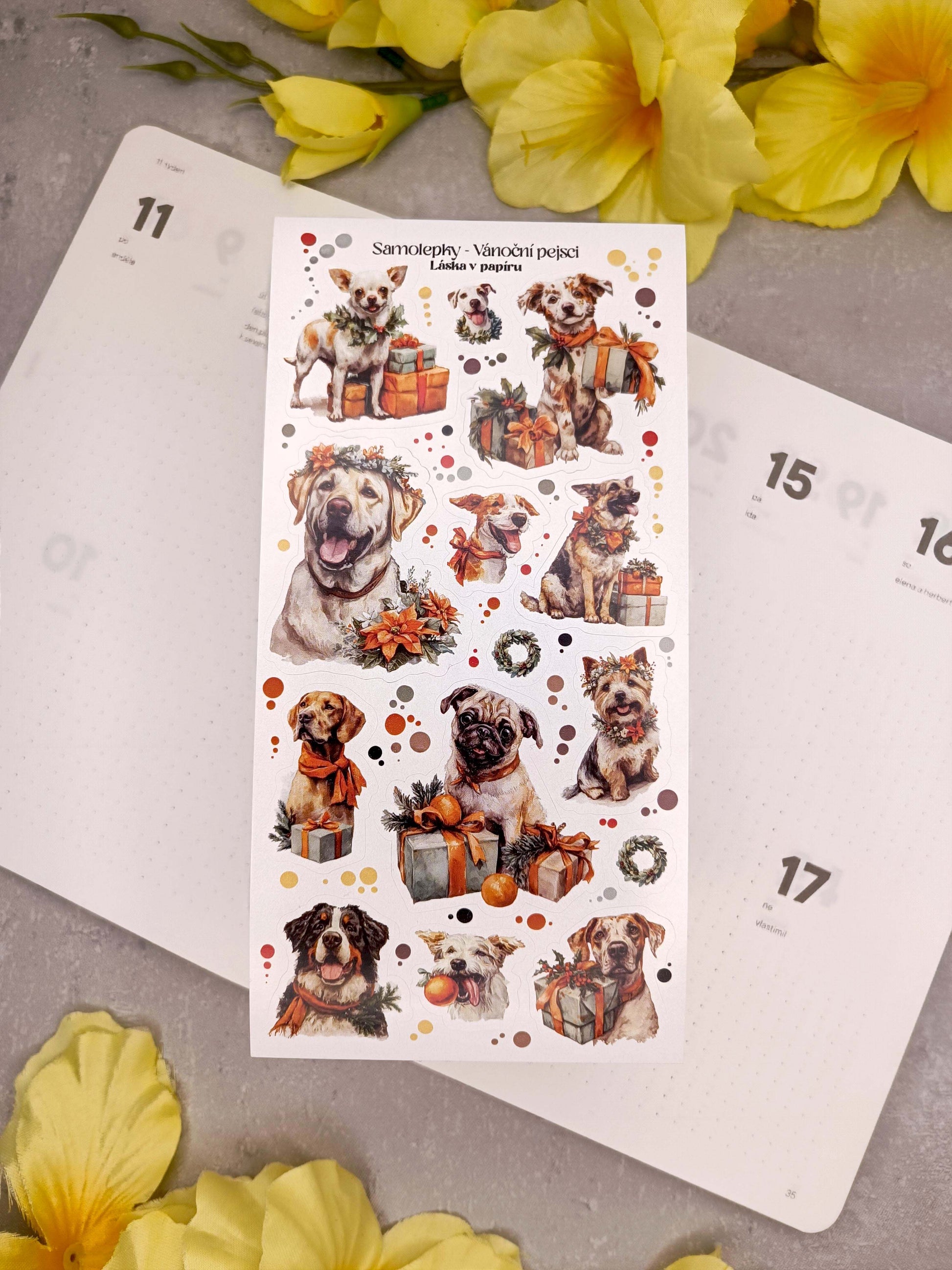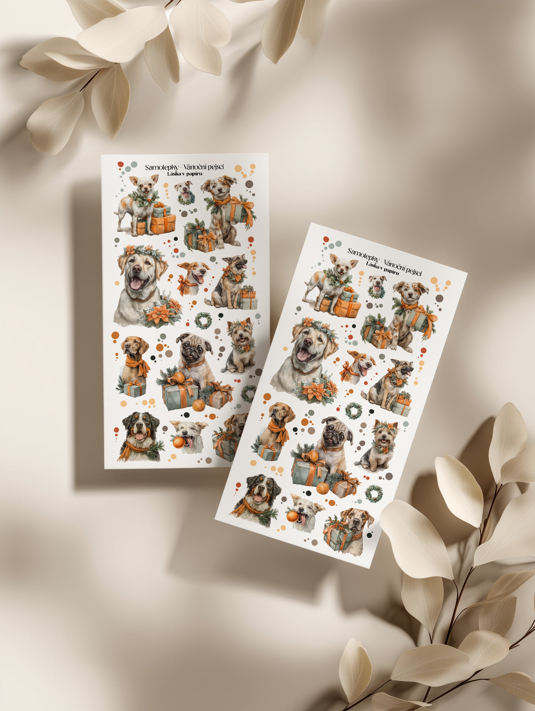 - motiv samolepek - vánoční pejsci, dárky a dekorace