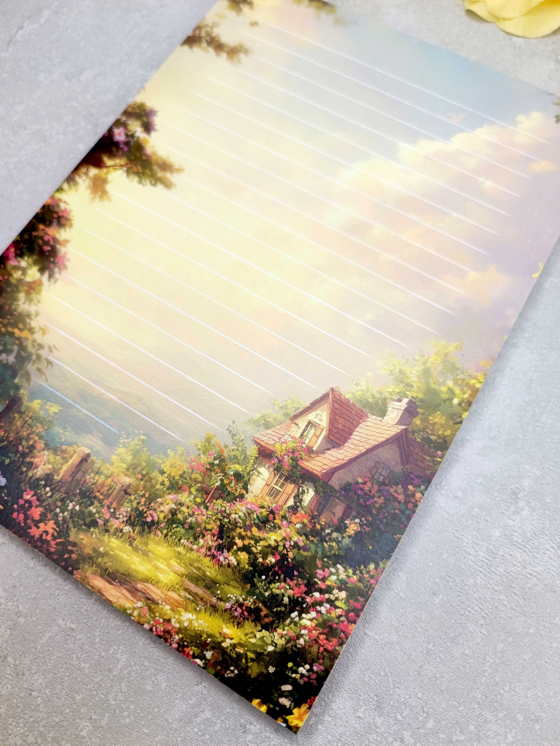 Zapište si všechny své myšlenky, nápady i poznámky do linkovaného trhacího bloku s jemným motivem krajiny s chaloupkou. Tento elegantní blok formátu A5 se stane vaším oblíbeným společníkem doma, v kanceláři i na cestách.