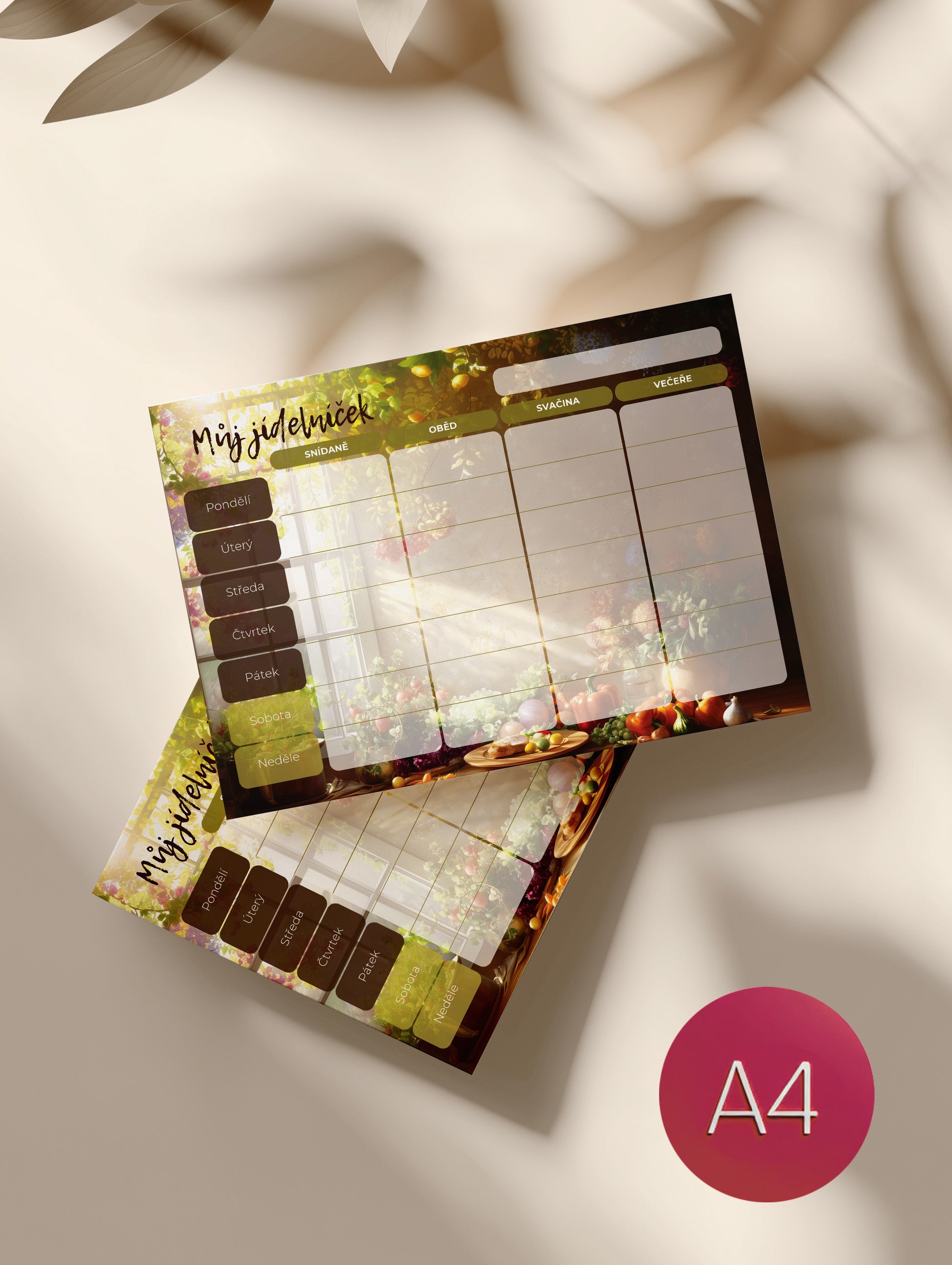 - Formát: A4 – dostatek prostoru pro plánování celého týdne
