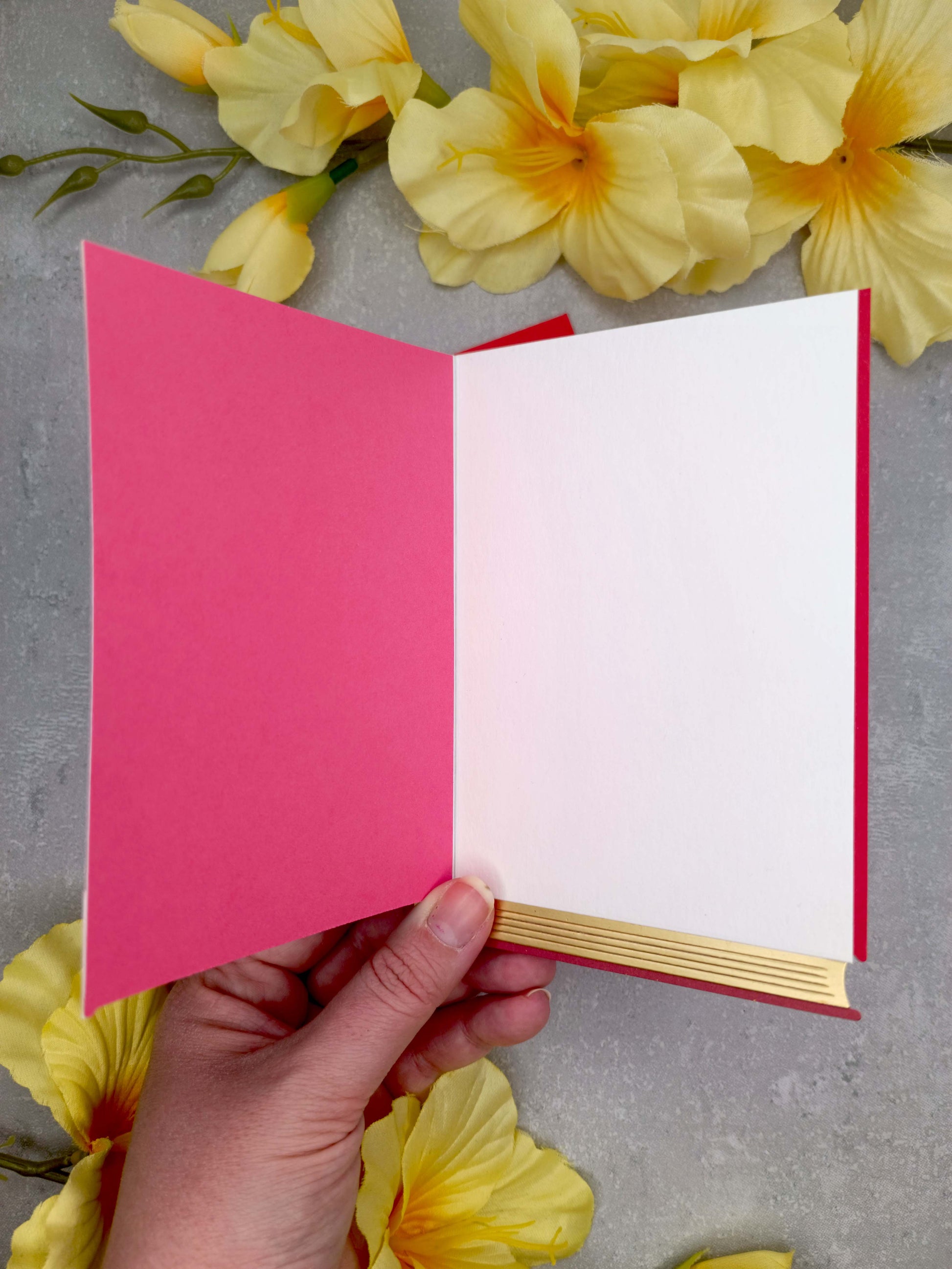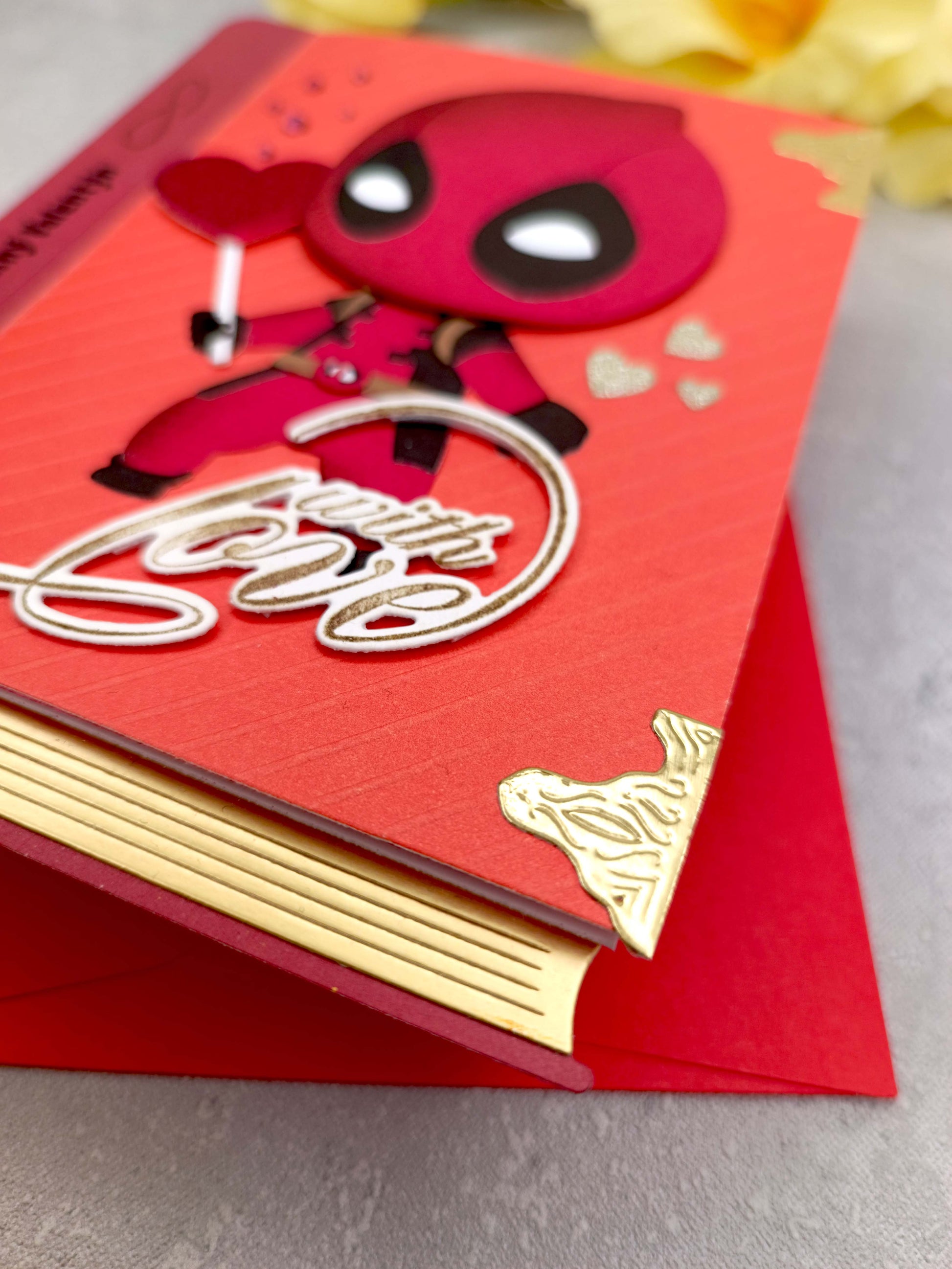 - Přání je ve tvaru knihy a je zdobeno červeným papírem, kamínky a nápisem "With love"