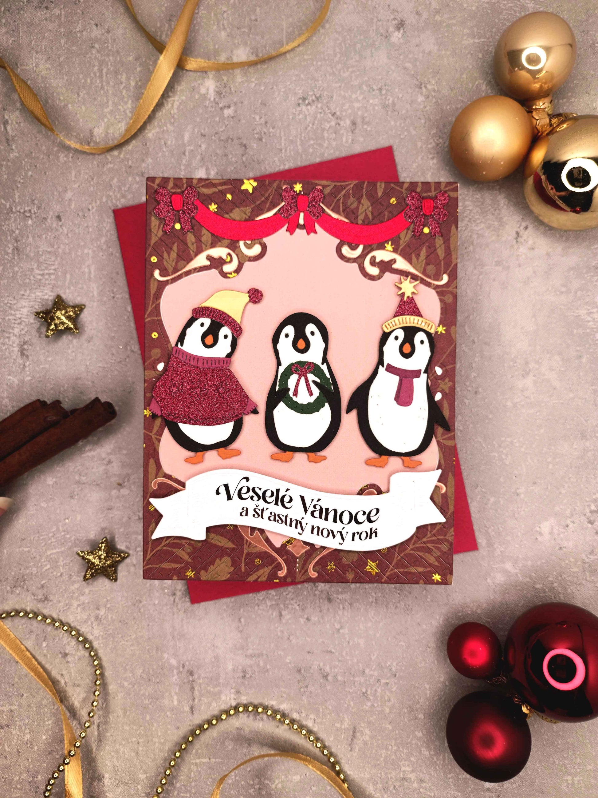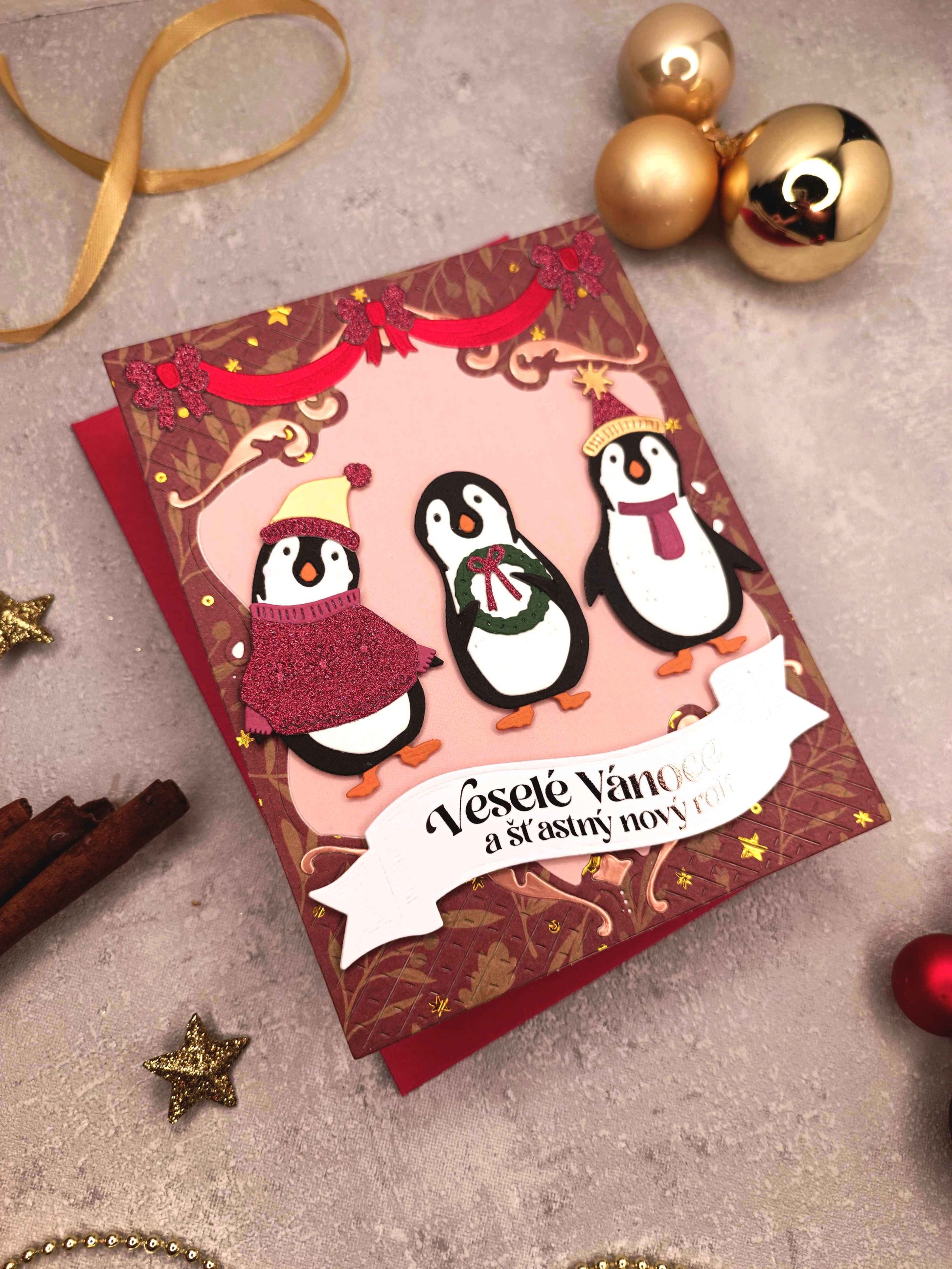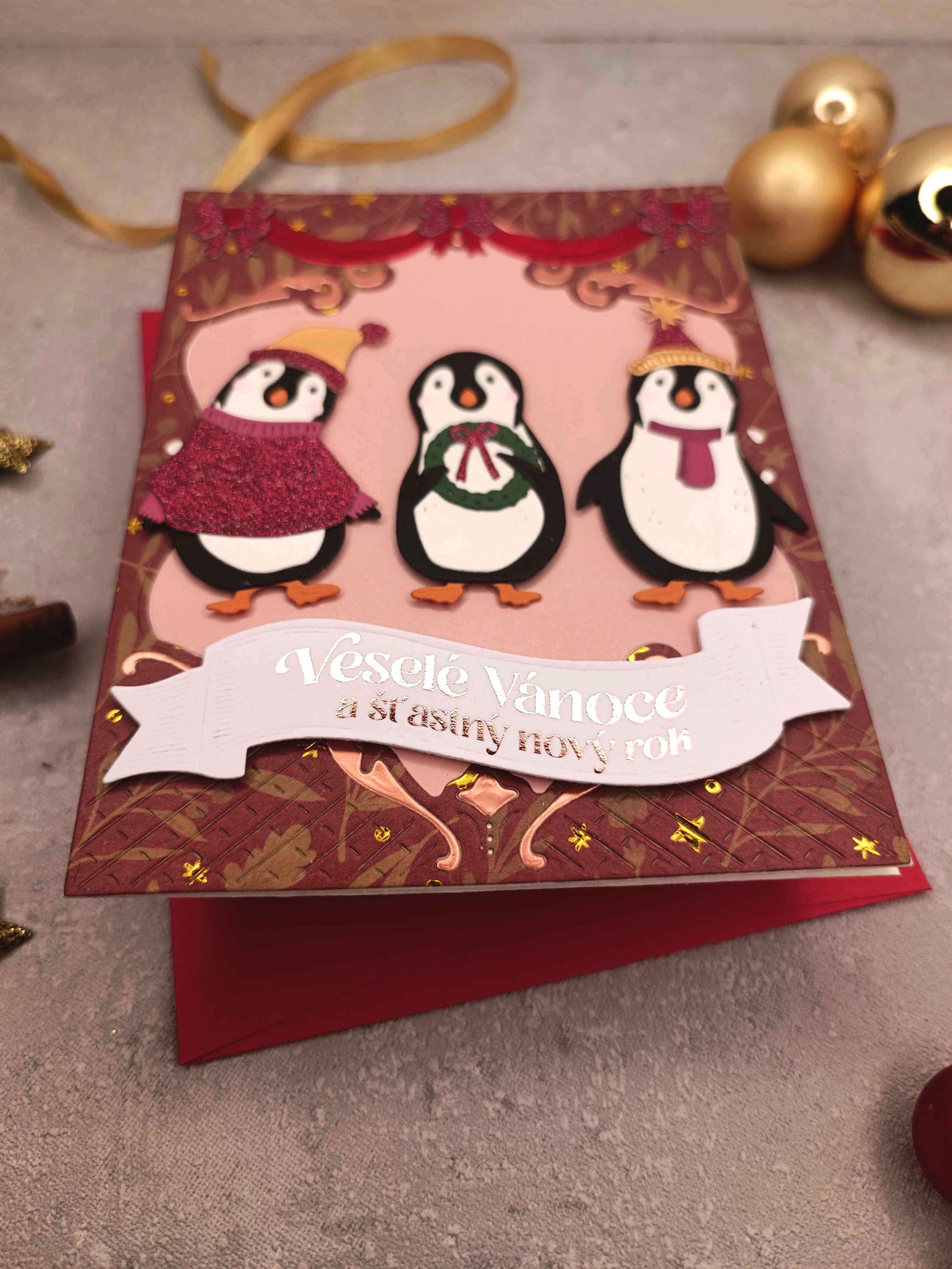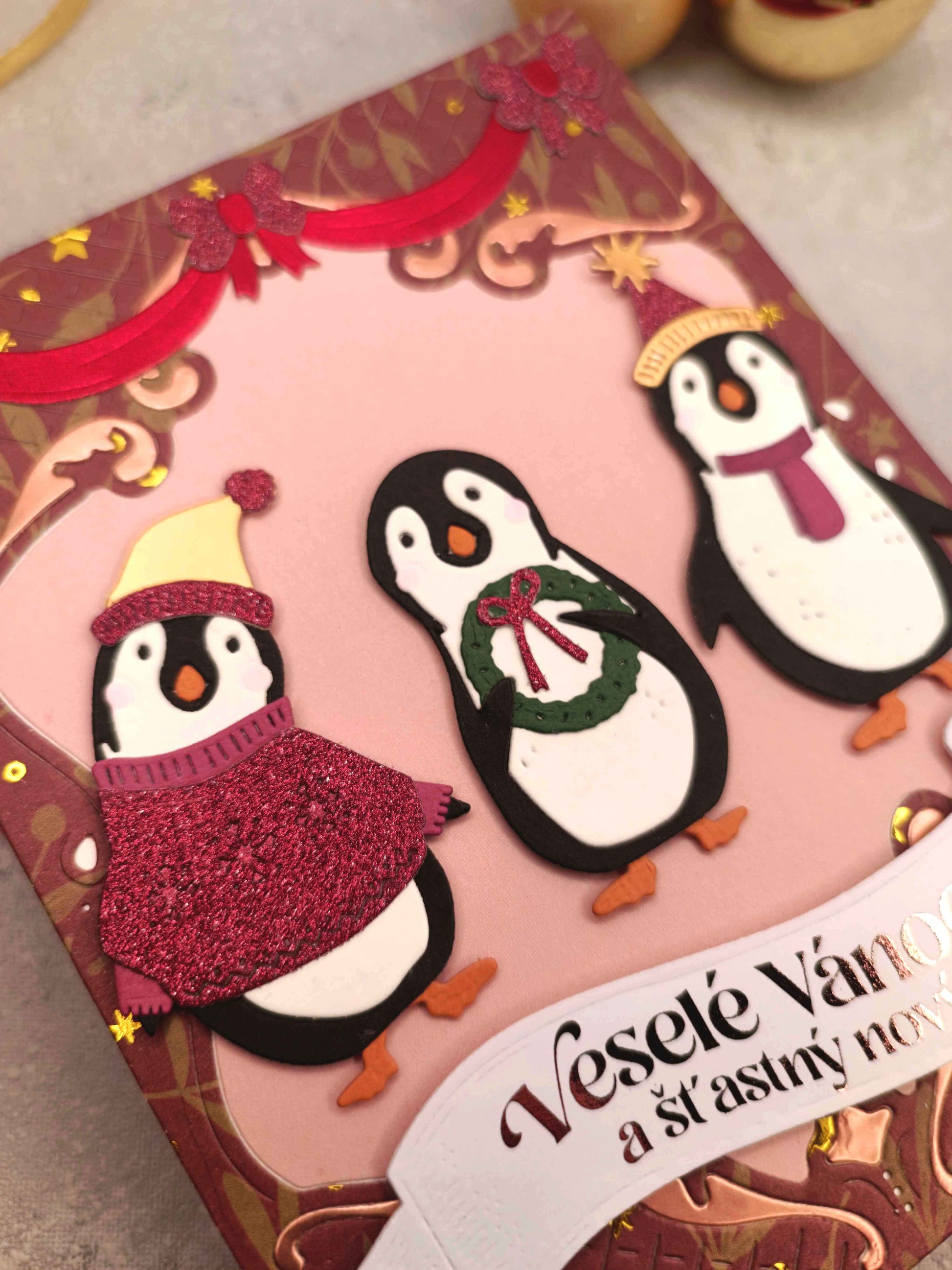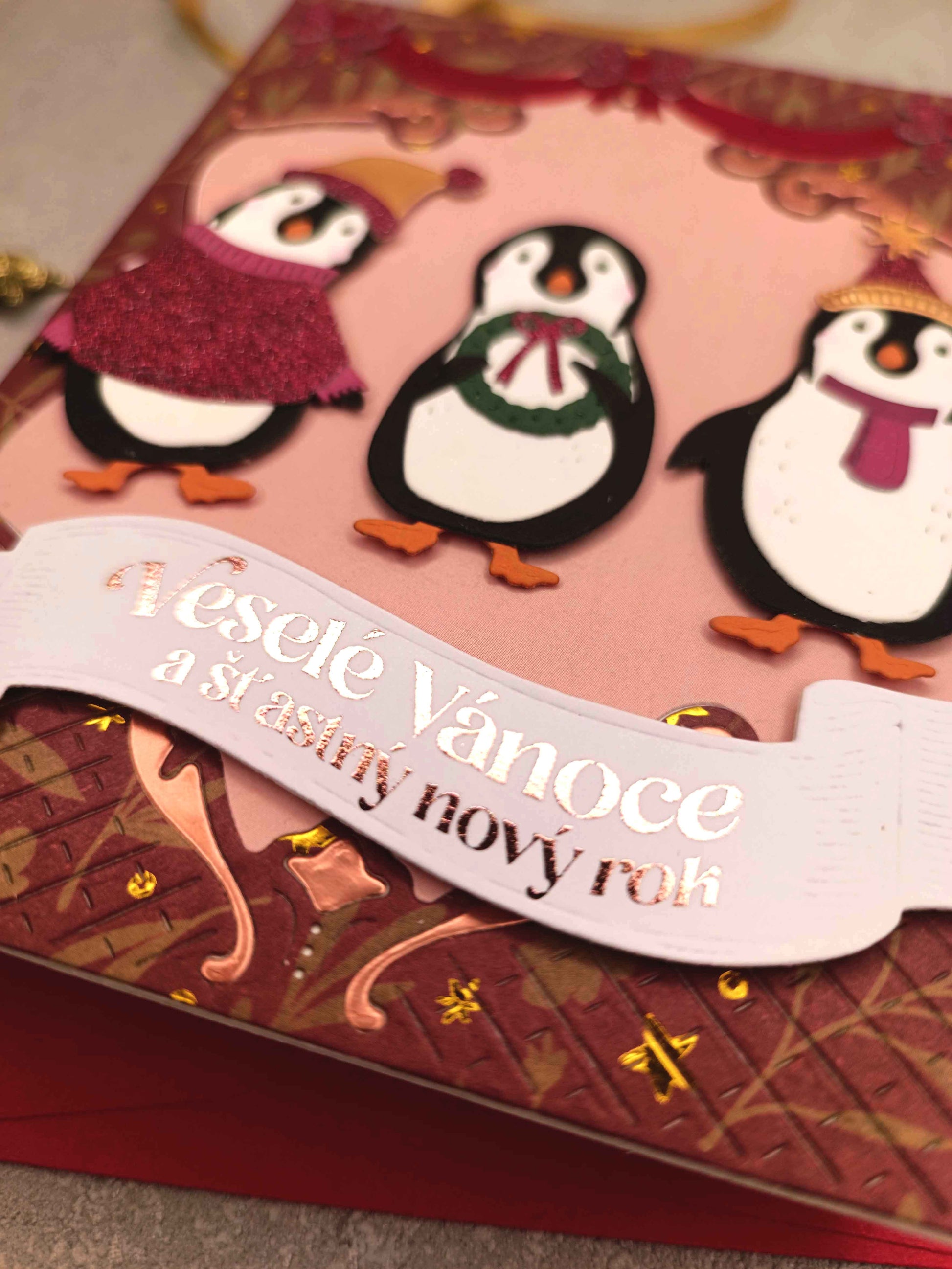 - Přání je zdobeno třpytivými zlatými elementy a růžovo-zlatým metalickým nápisem