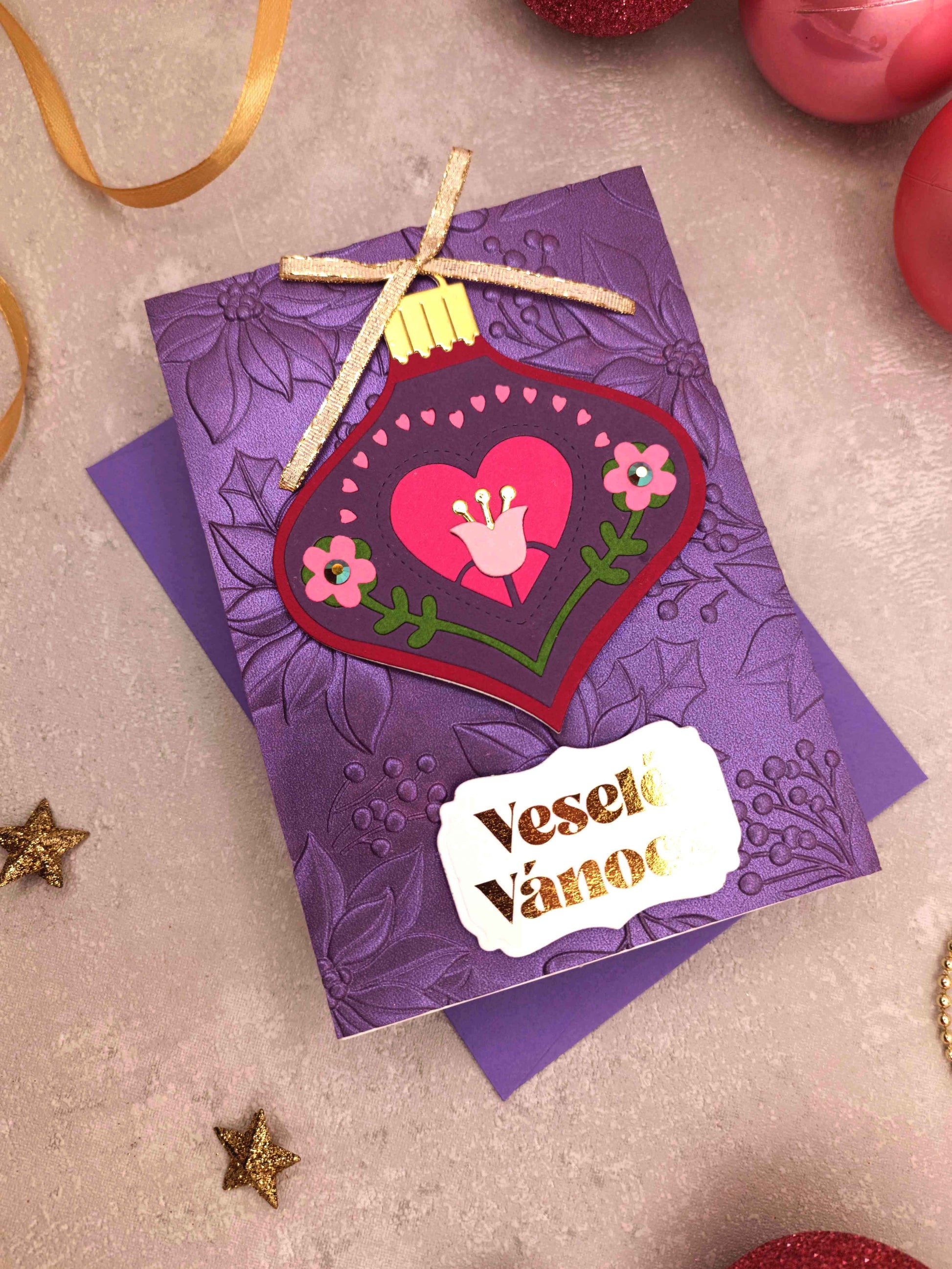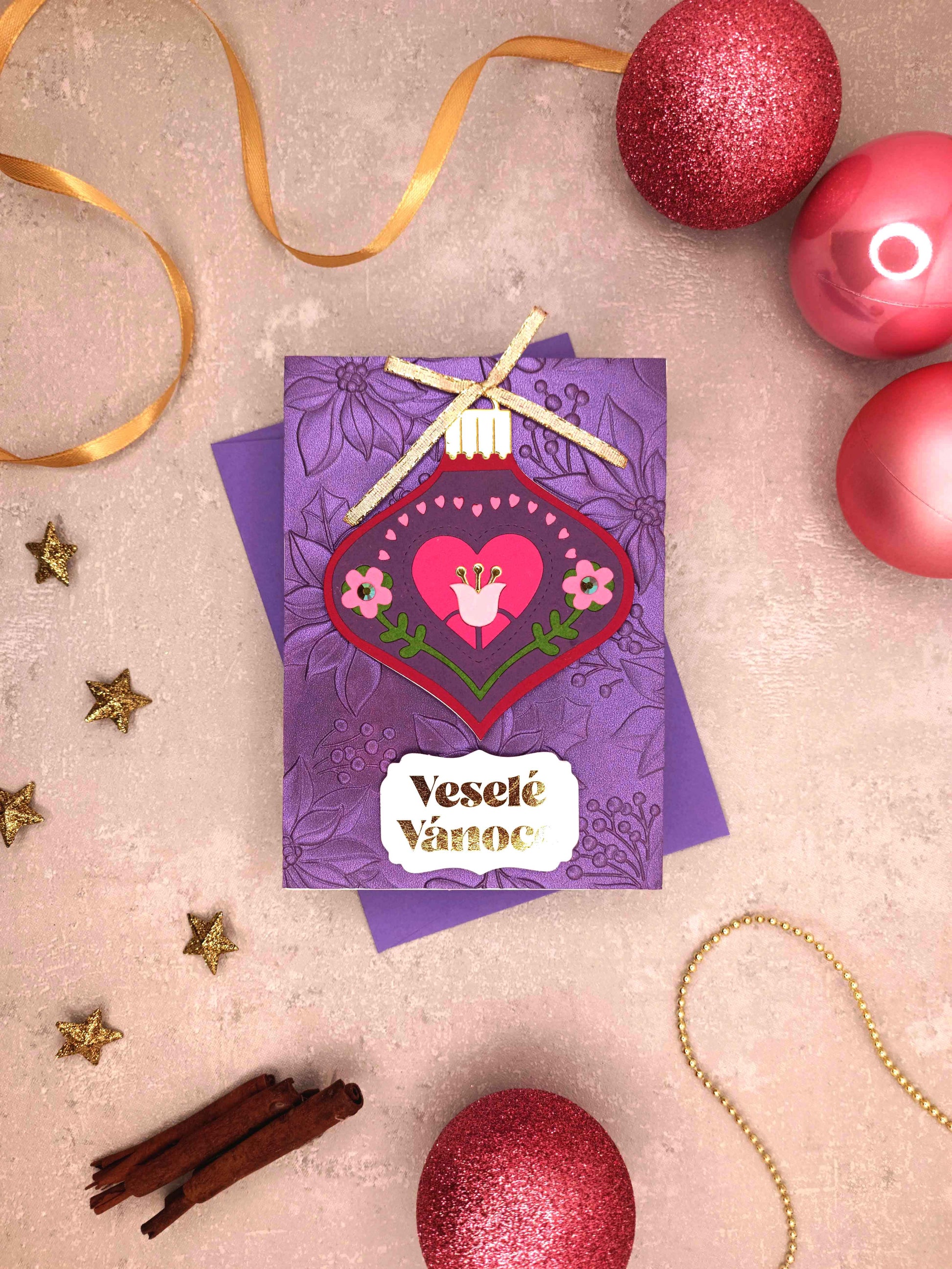 - Ručně vyrobené vánoční přání s motivem vánoční baňky
