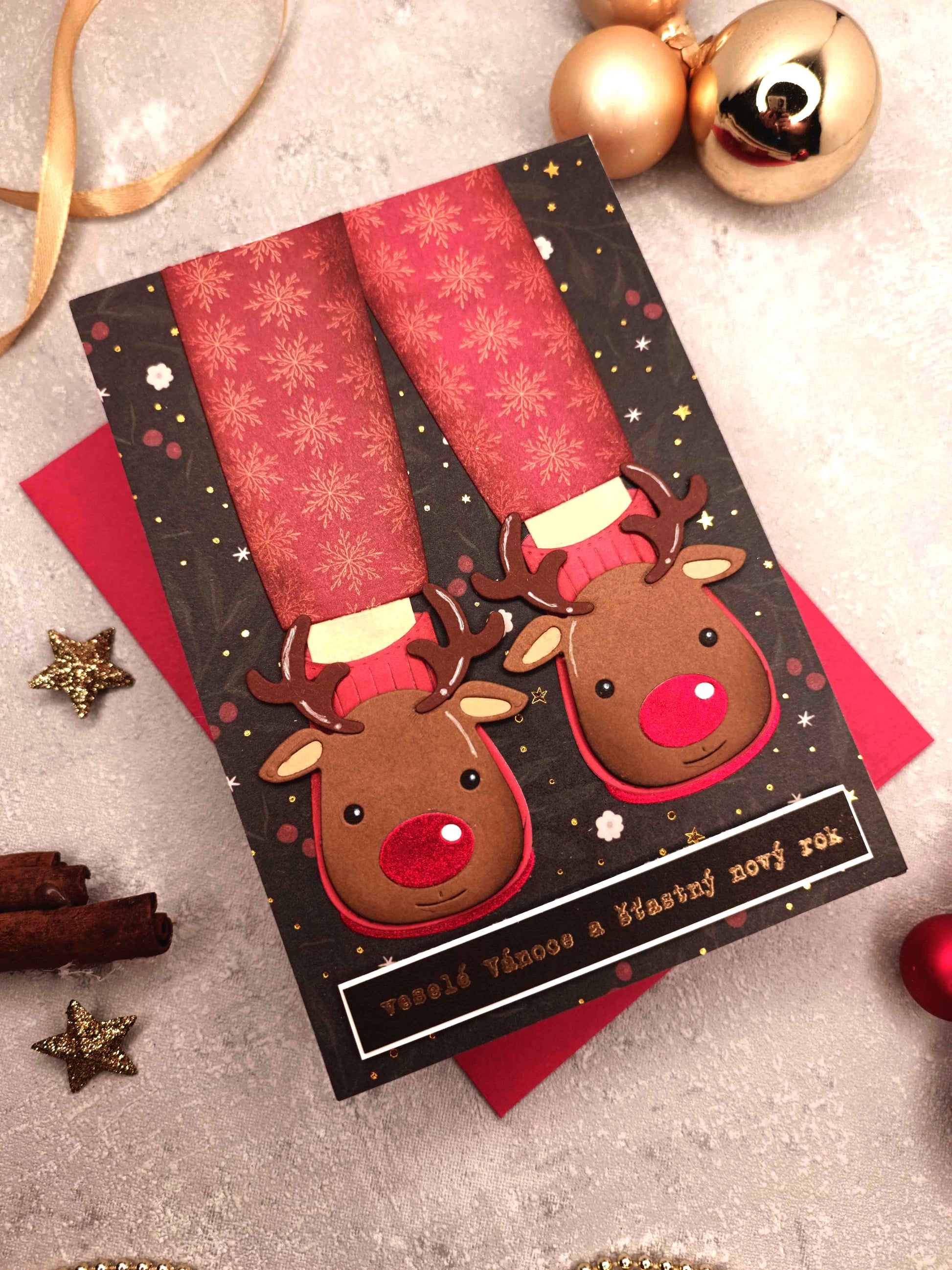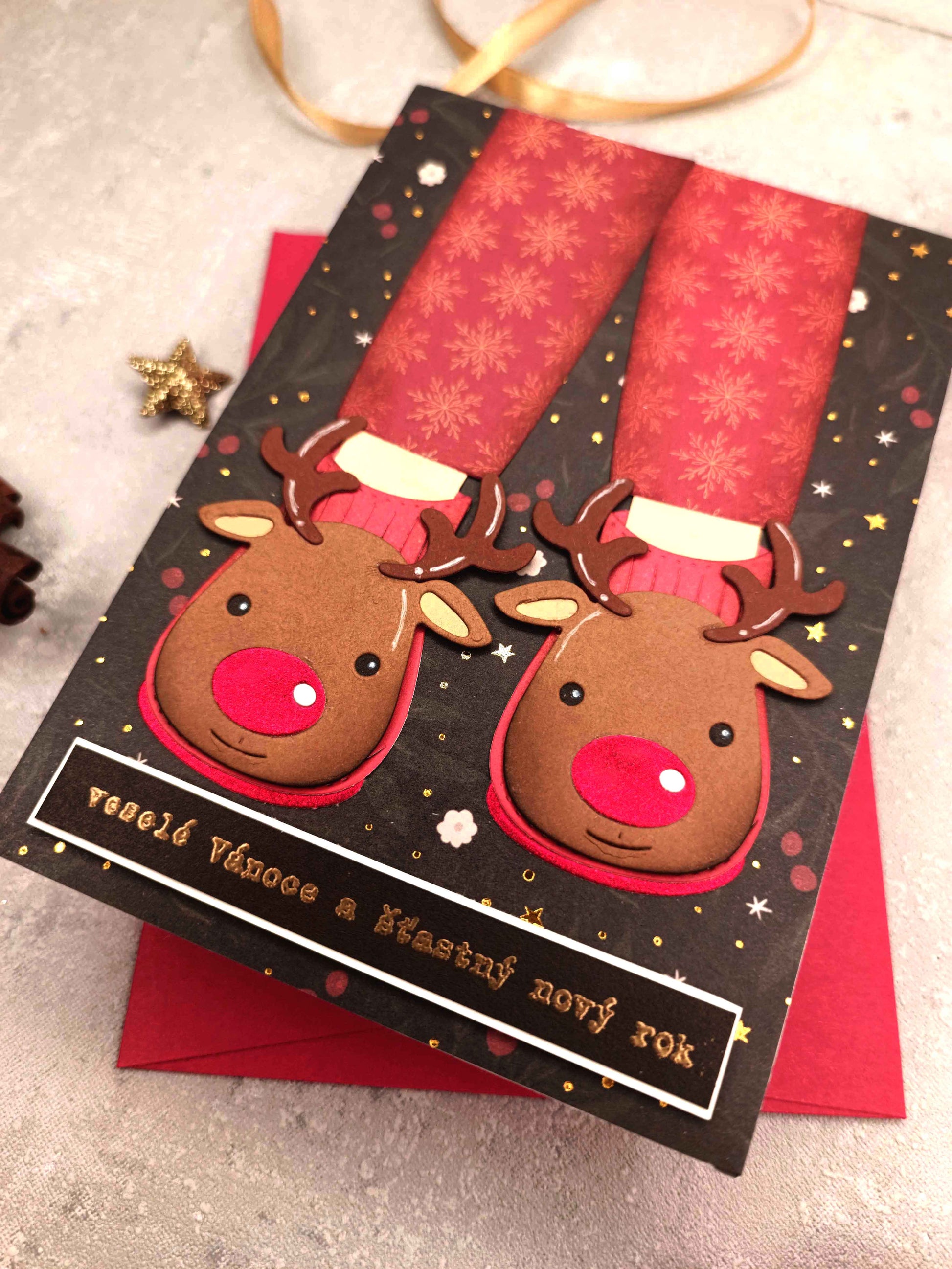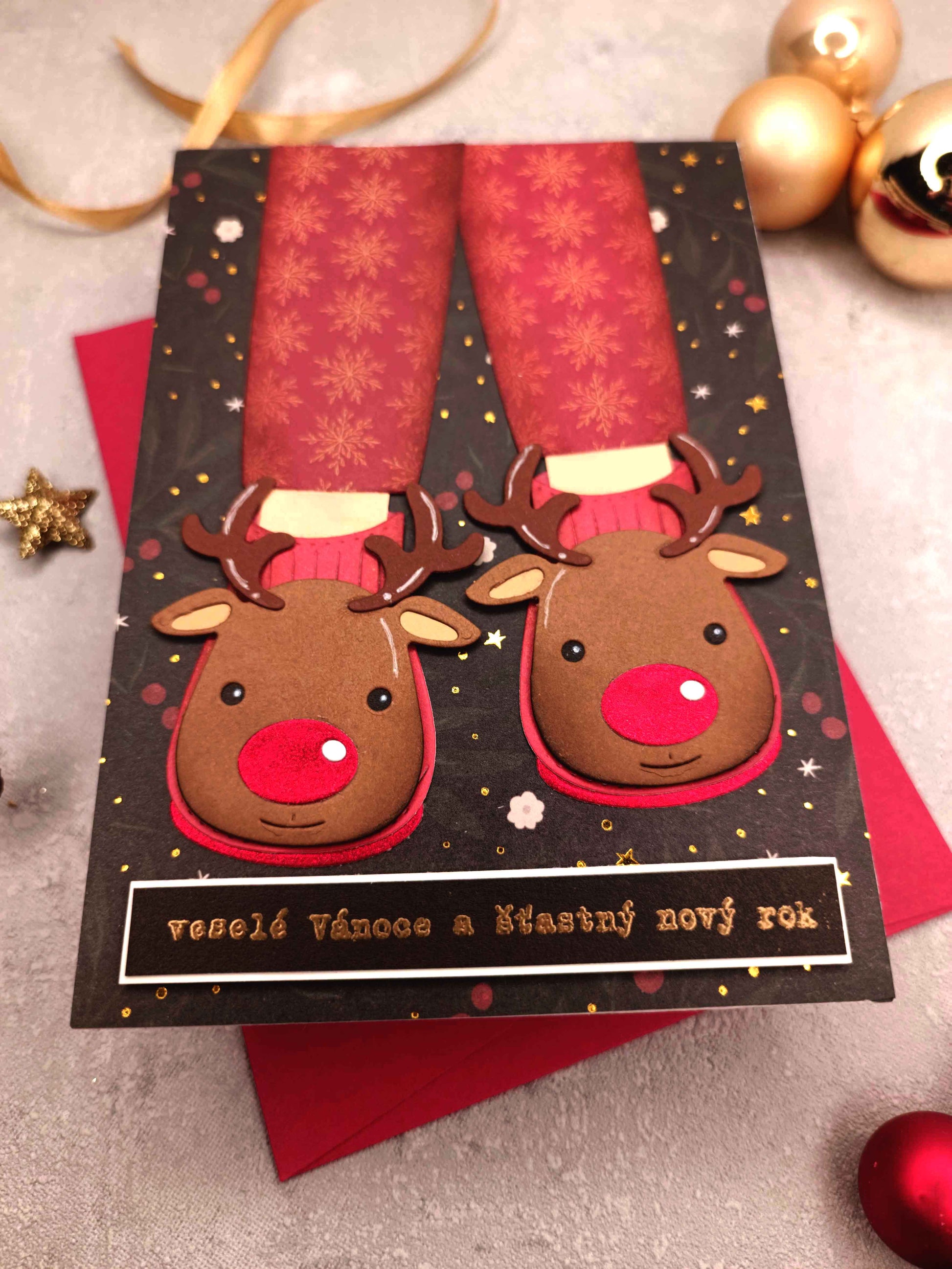 - Ručně vyrobené vánoční přání s motivem sobích papuček