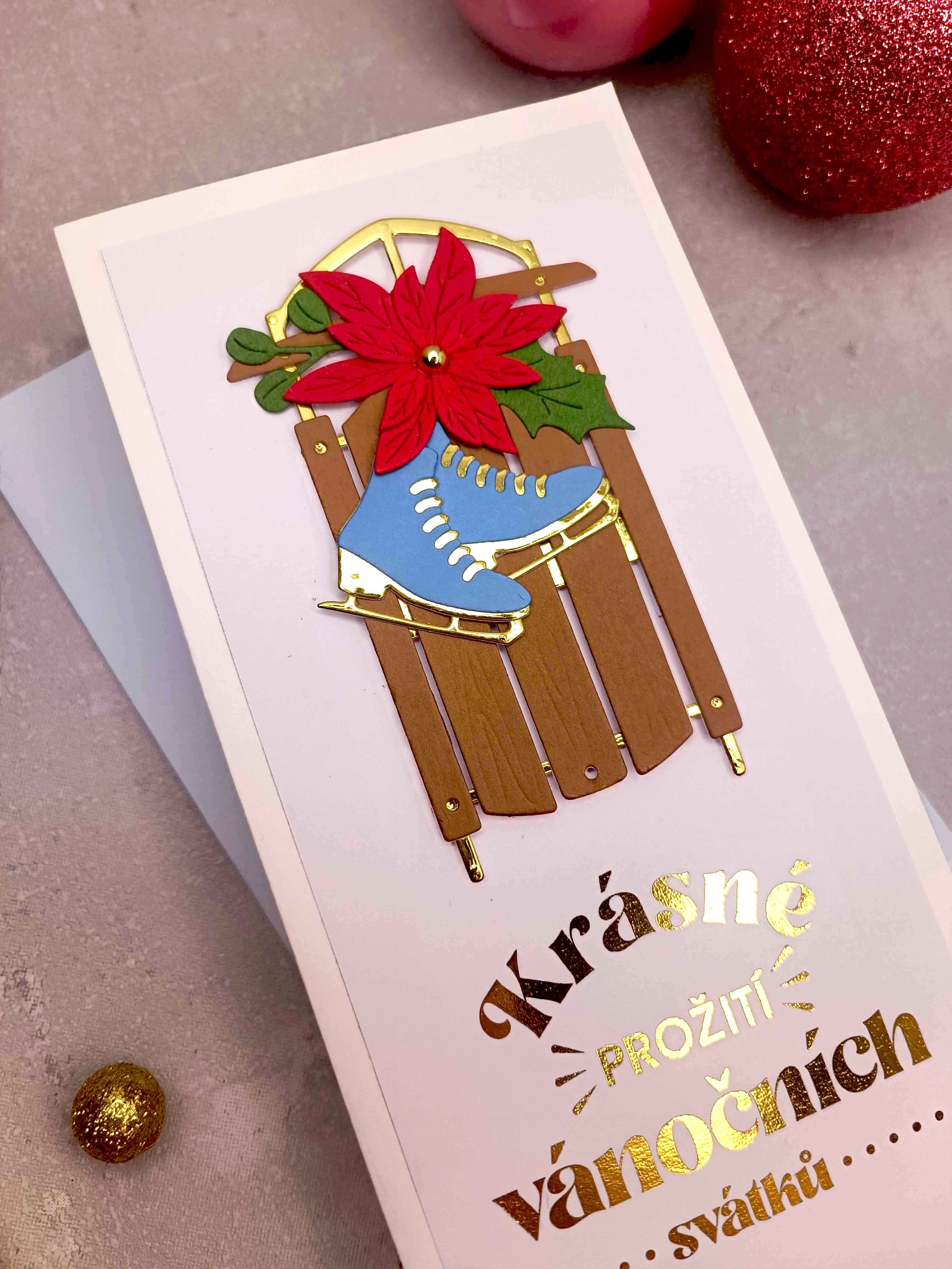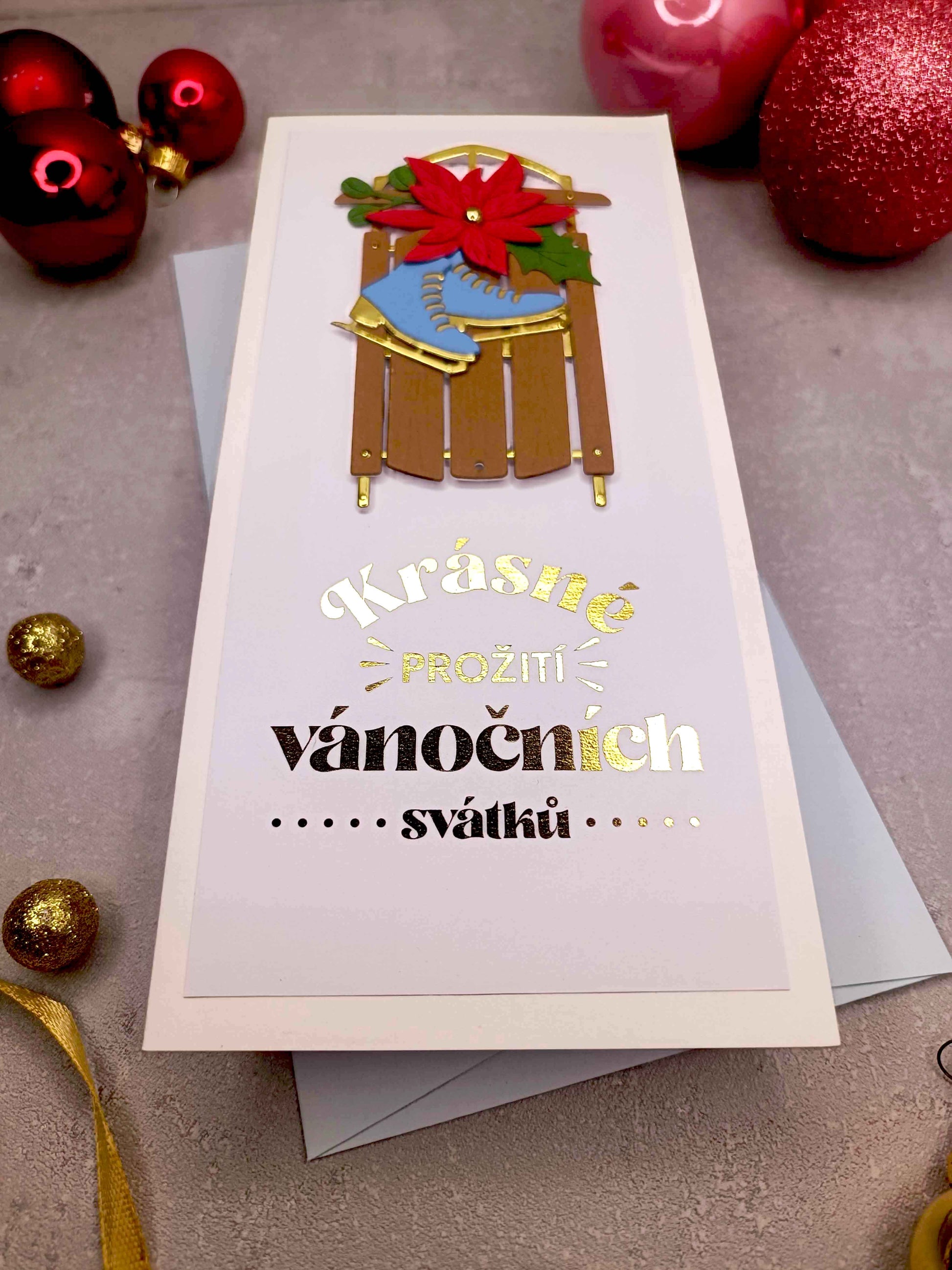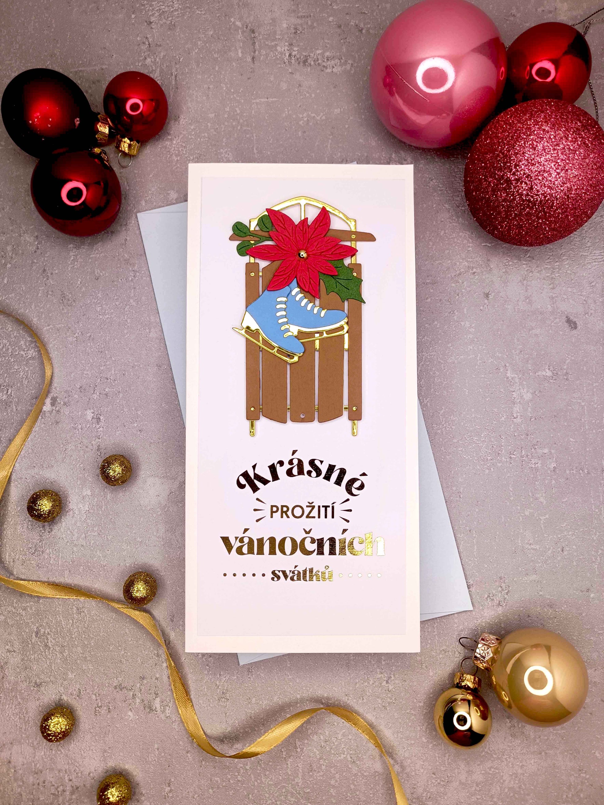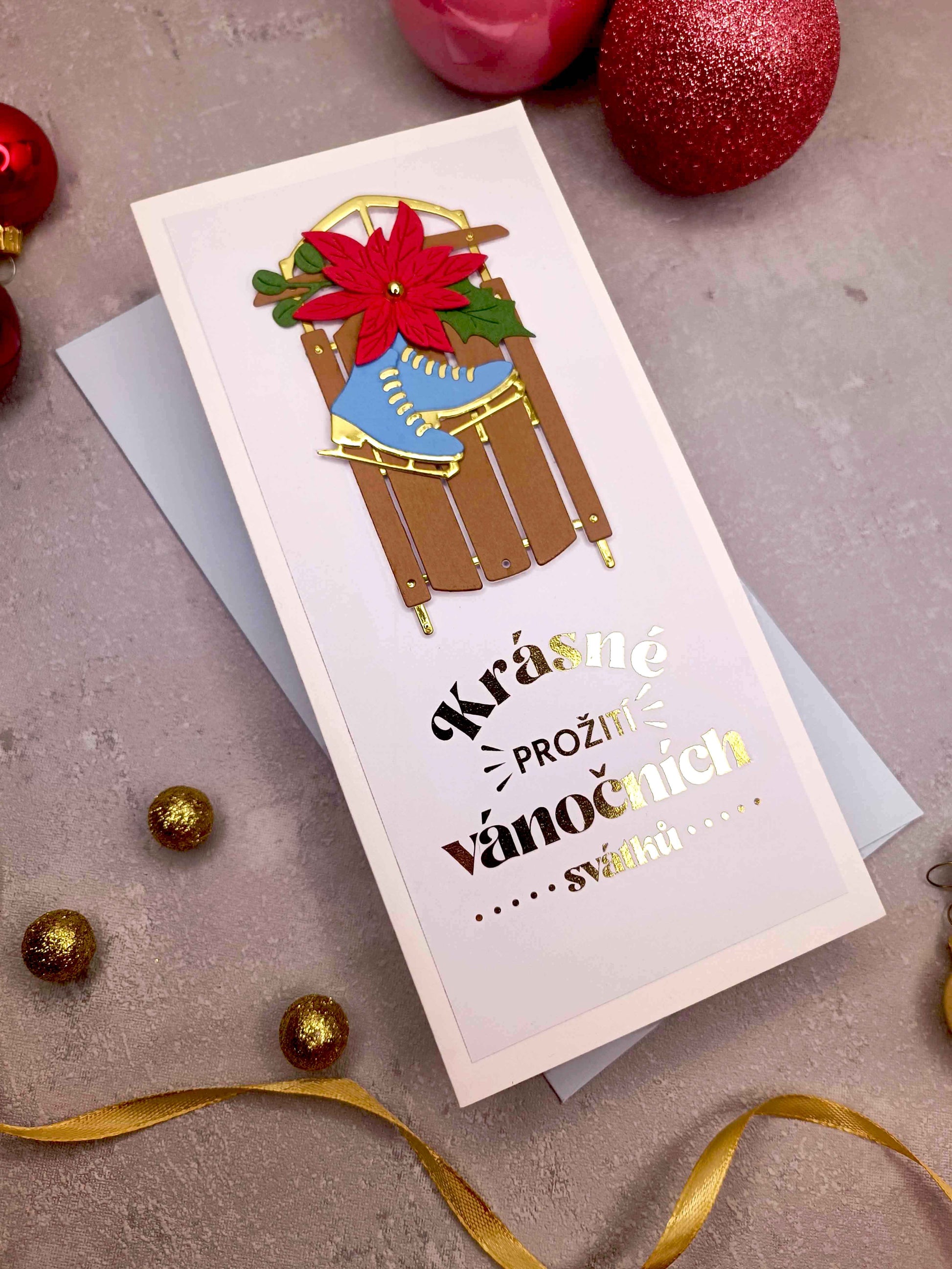 - Přání je zdobeno zlatým metalickým nápisem a zlatými elementy