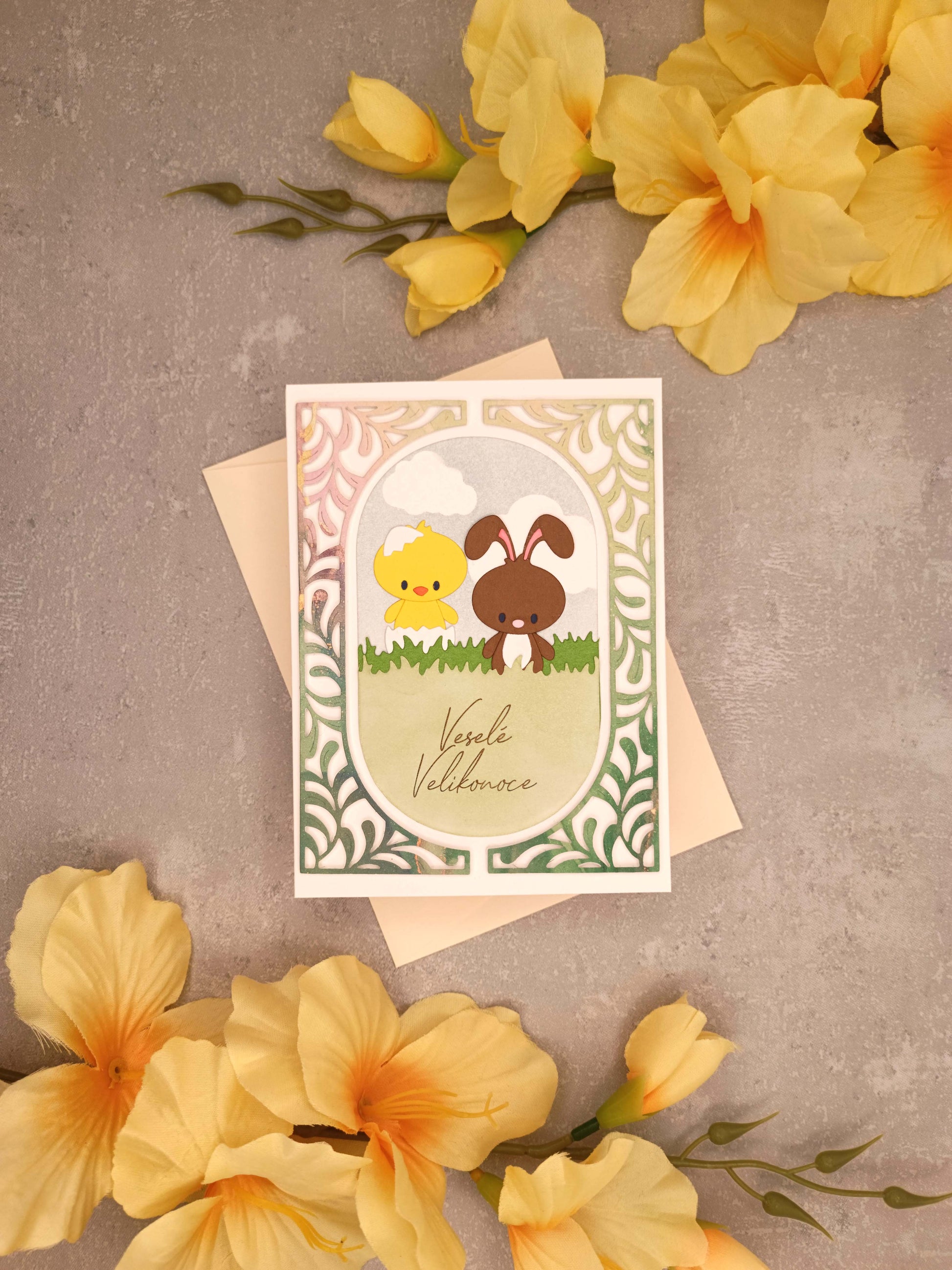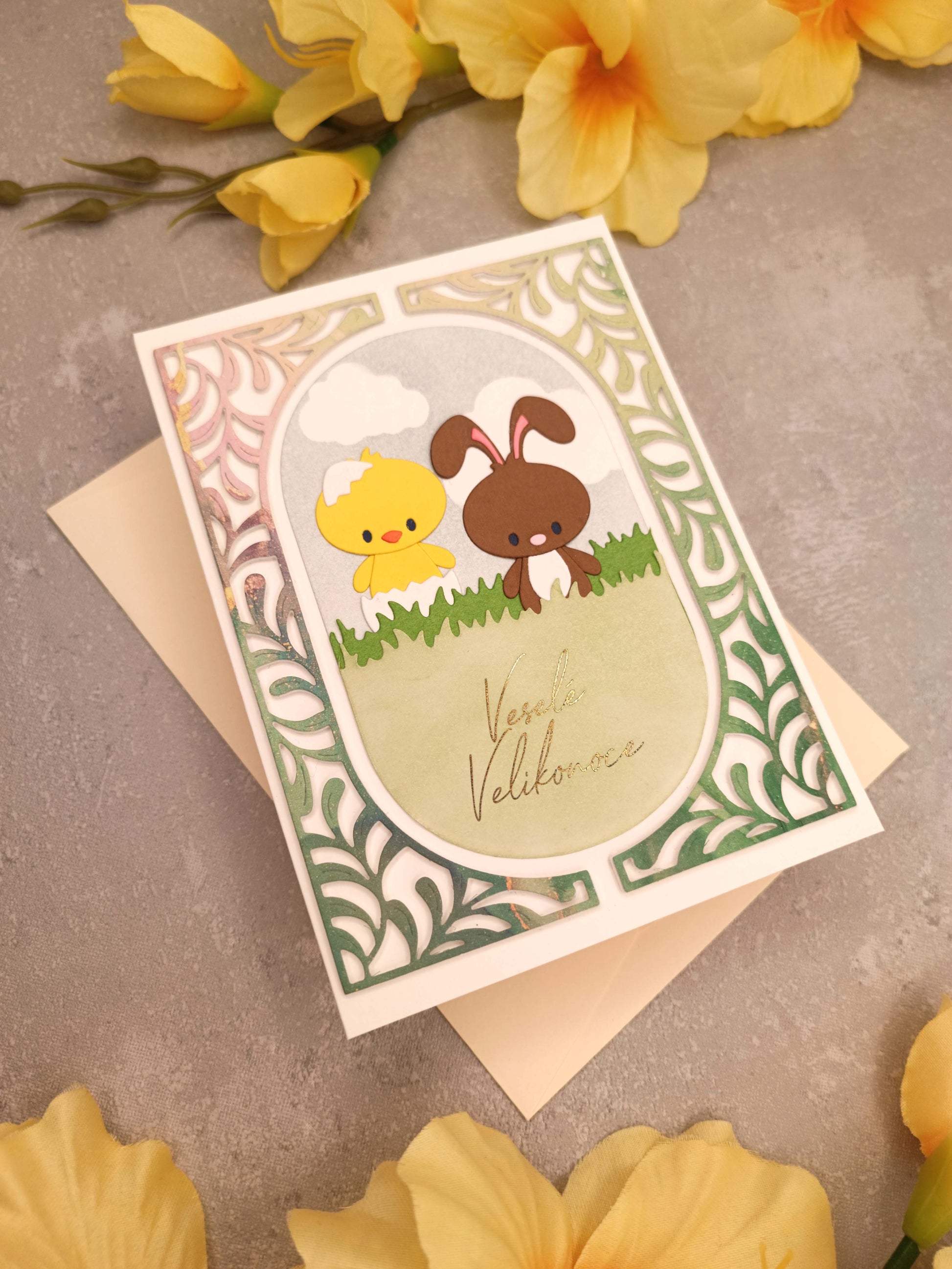Velikonoční přání s kuřátkem a zajíčkem II.