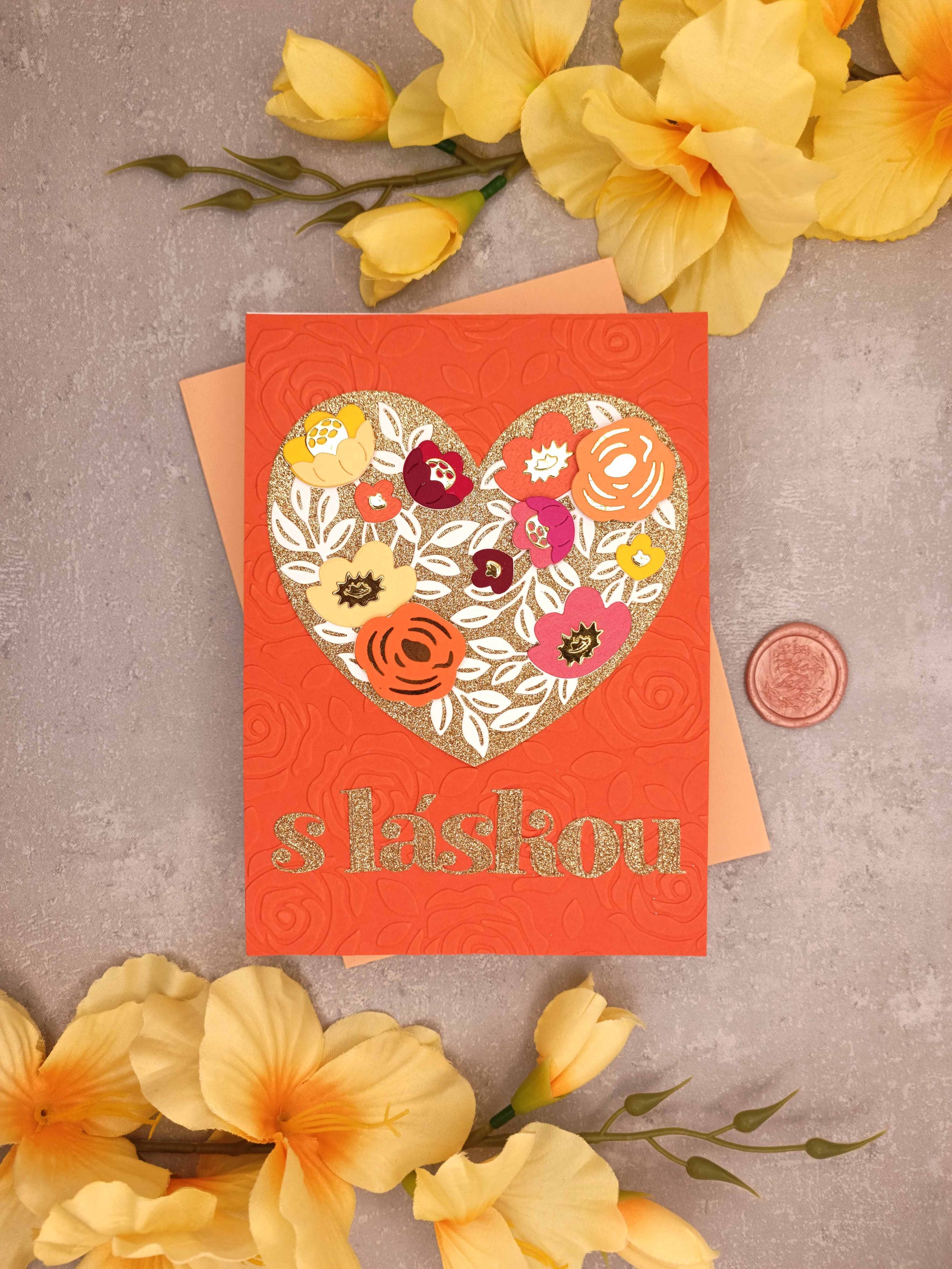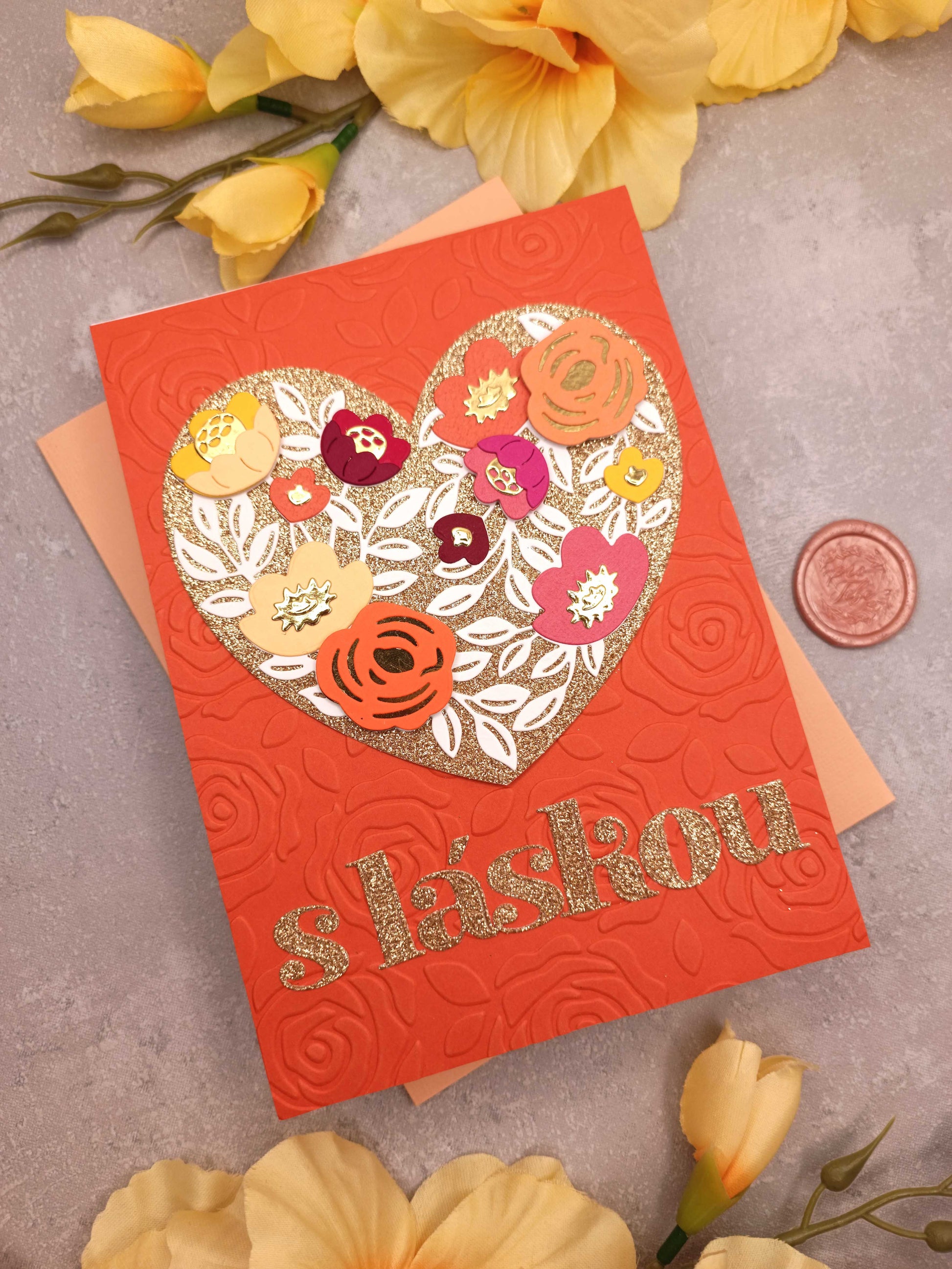 - Přáníčko je zdobeno embosovaným papírem a zlatým nápisem